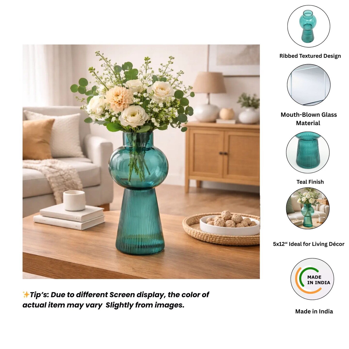 Vase | Modern Funnel Flare Glass Vase | 5x12" | Sleek Decorative Accent for Contemporary Home, Office & Minimalist Interiors