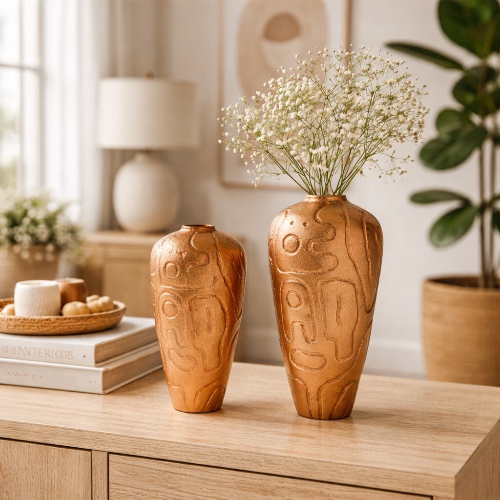 Vases | Aluminum Vase with Antique Copper Finish | Set of 2