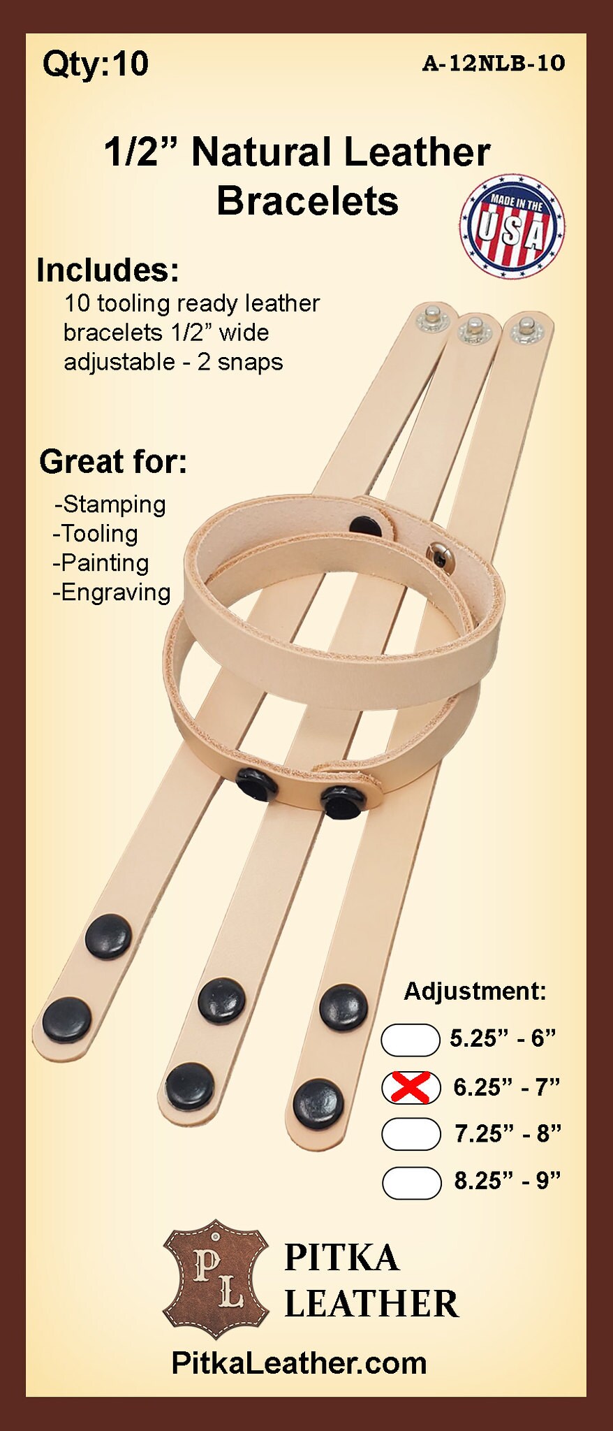 Vegetable-Tanned Leather Wristbands 1/2" – Craft, Tool, and Personalize Your Own Bracelets (10 pack)