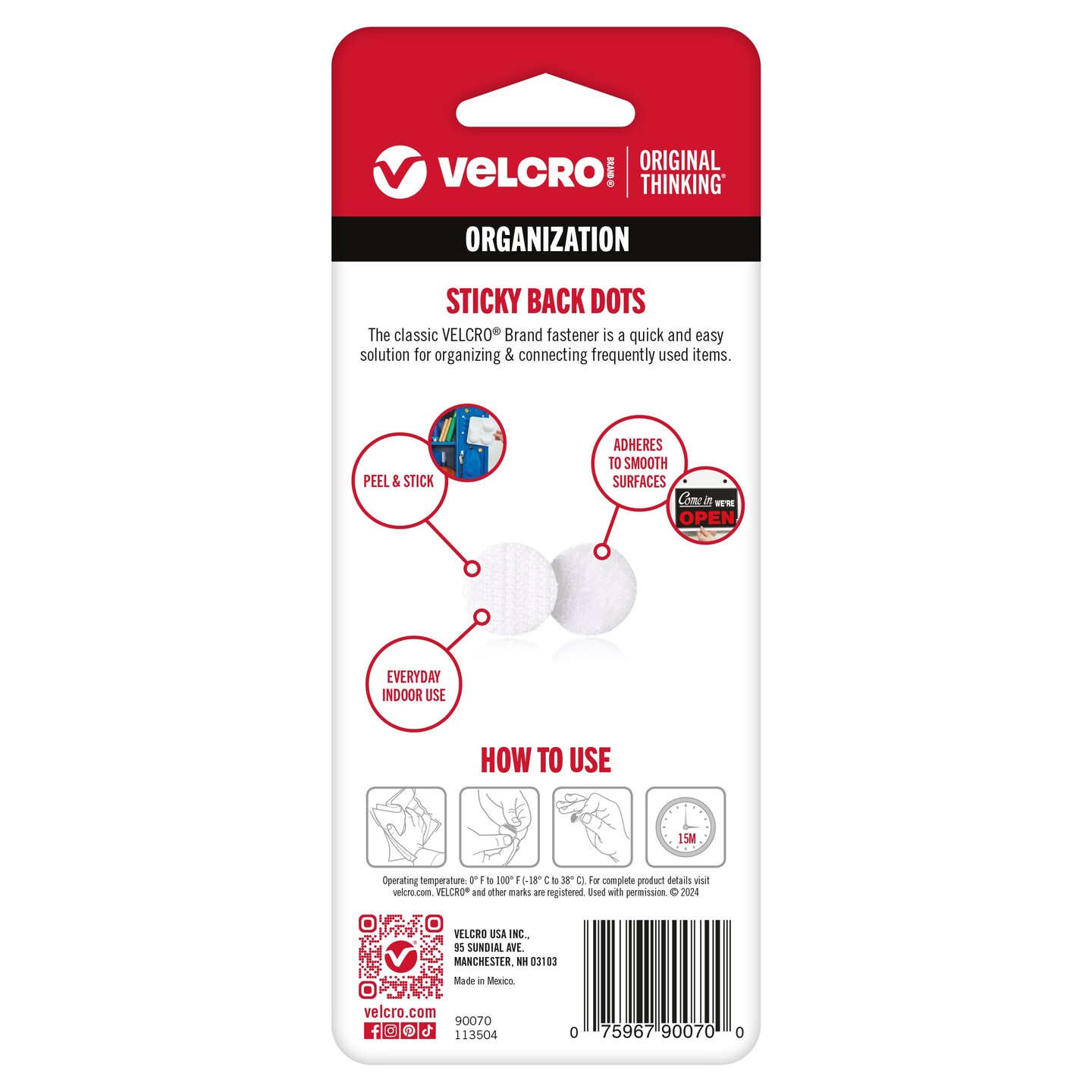VELCRO(R) Brand Sticky Back Coins .625" 15/Pkg-White