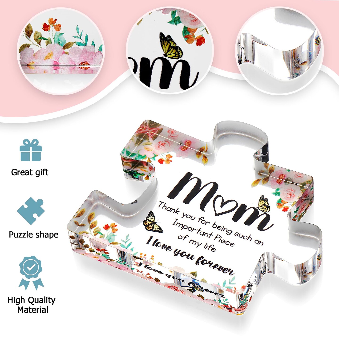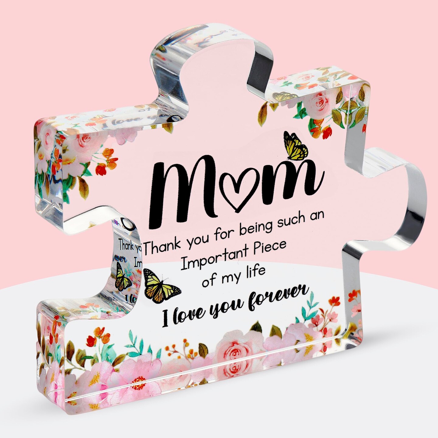 VELENTI Gifts for Mom - Cute Engraved Acrylic Block Puzzles Piece - Adorable Mom Gift from Son, Daughter - Fun Christmas, Mothers Day, Birthday Gift Idea for Mom - Fancy Decoration Piece for Home