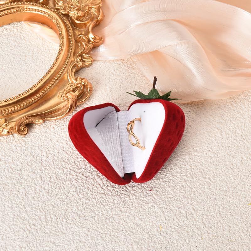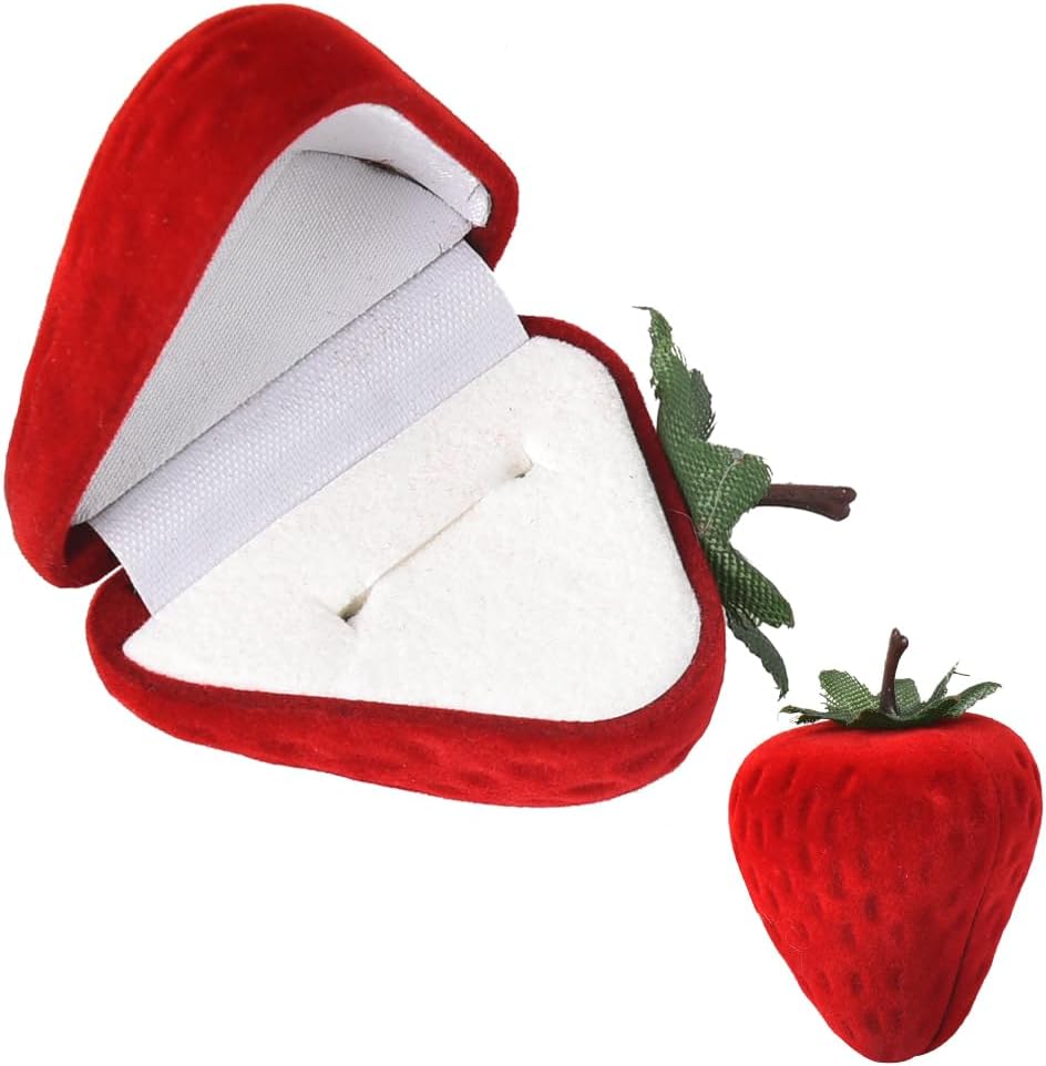 Velvet Ring Box Cute Strawberry Ring Box Ring Gift Box for Women Wedding Ring Display Box Ring Storage Boxes for Multiple Rings Strawberry Decorations for Birthday Proposal Engagement