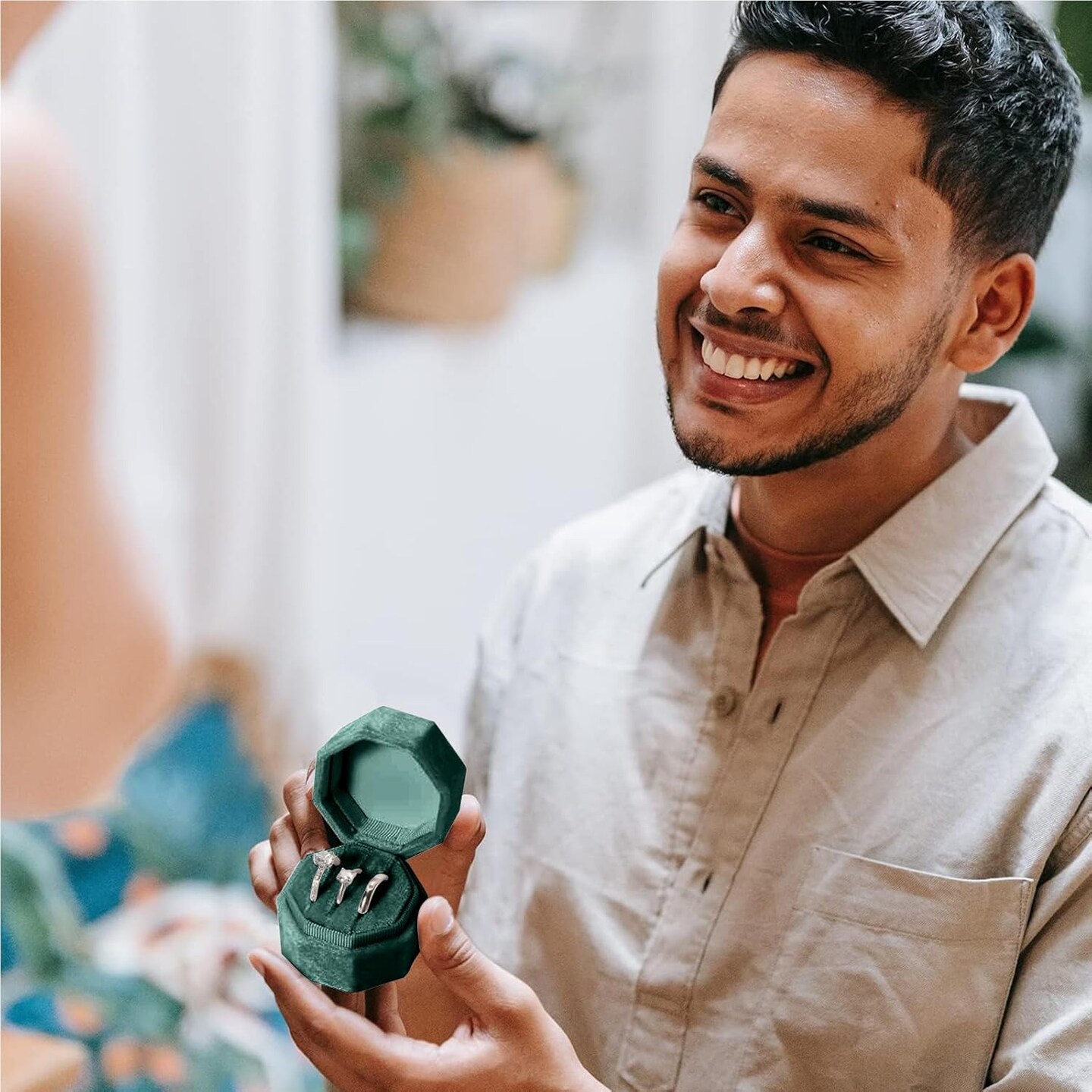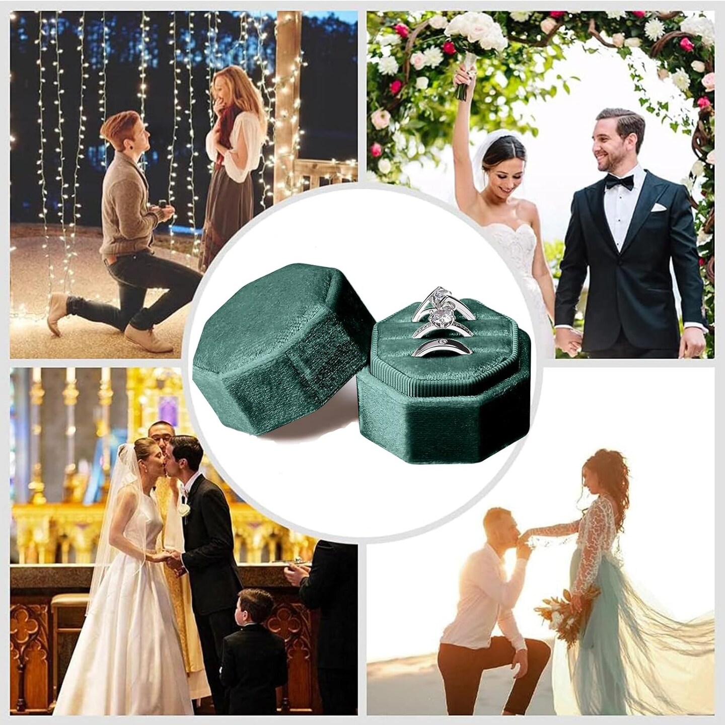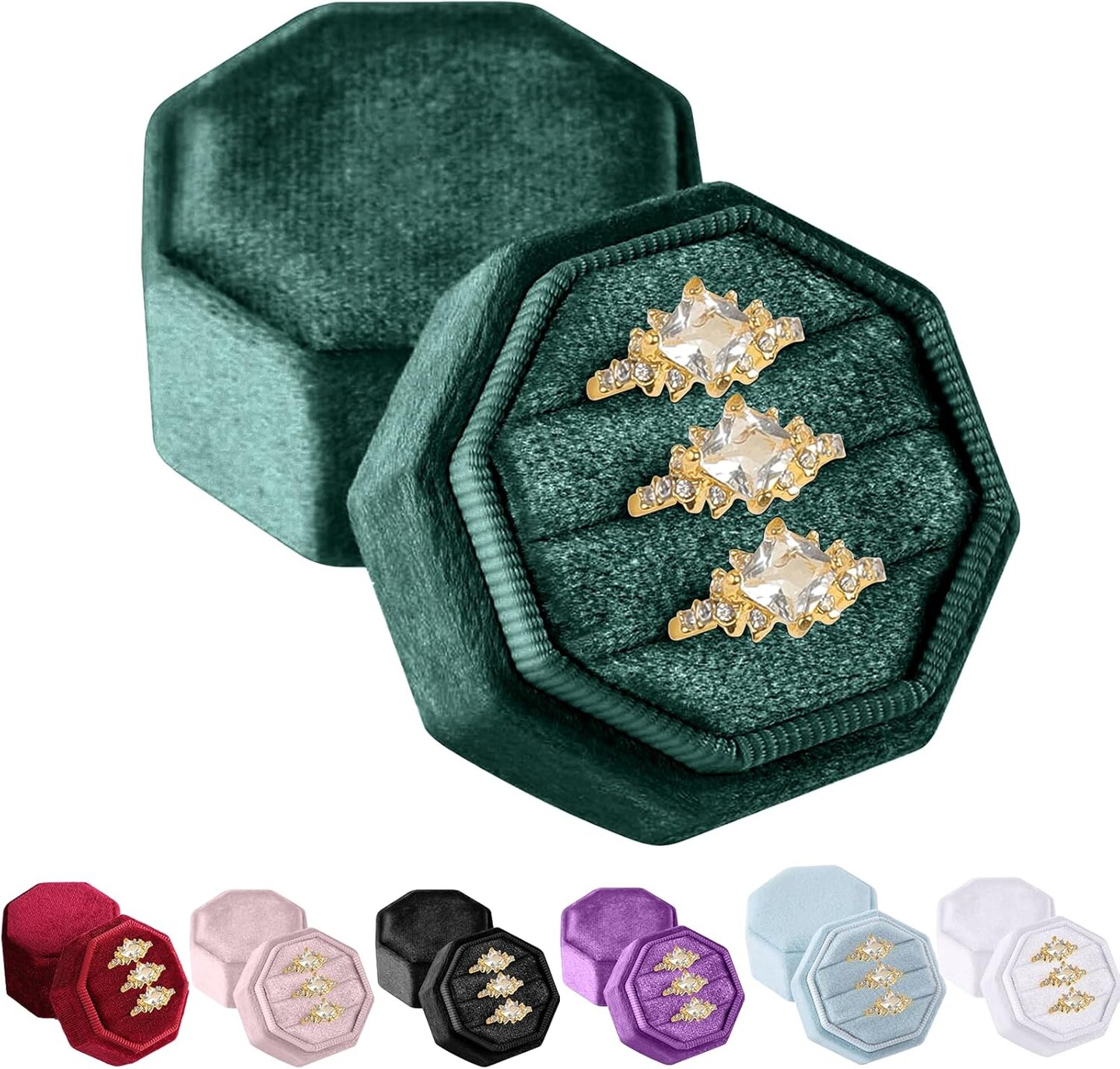 Velvet Ring Box, Jewelry Storage 3 Slots Jewelry Ring Gift Box Octagon Velvet Ring Case Box Organize Ring Holder Box