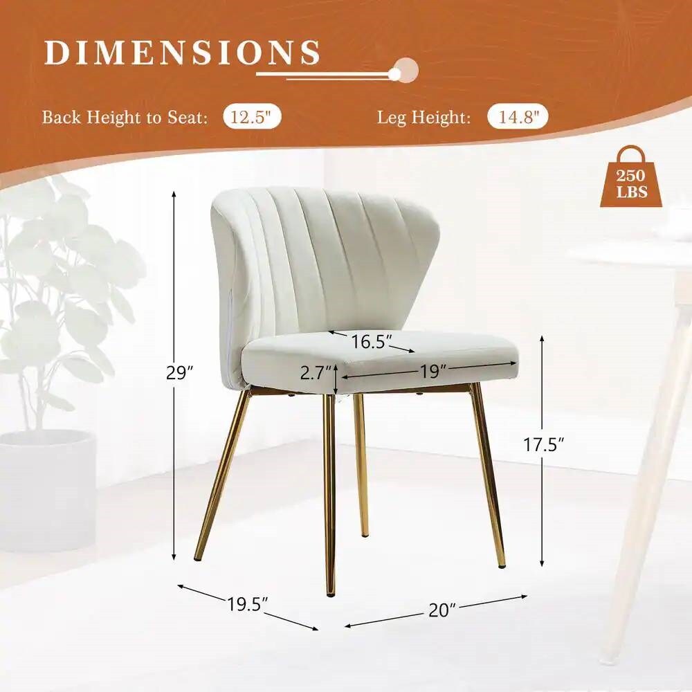 Velvet Upholstered Wingback Armless Side Chair with Gold Metal Legs for Living Room or Dining