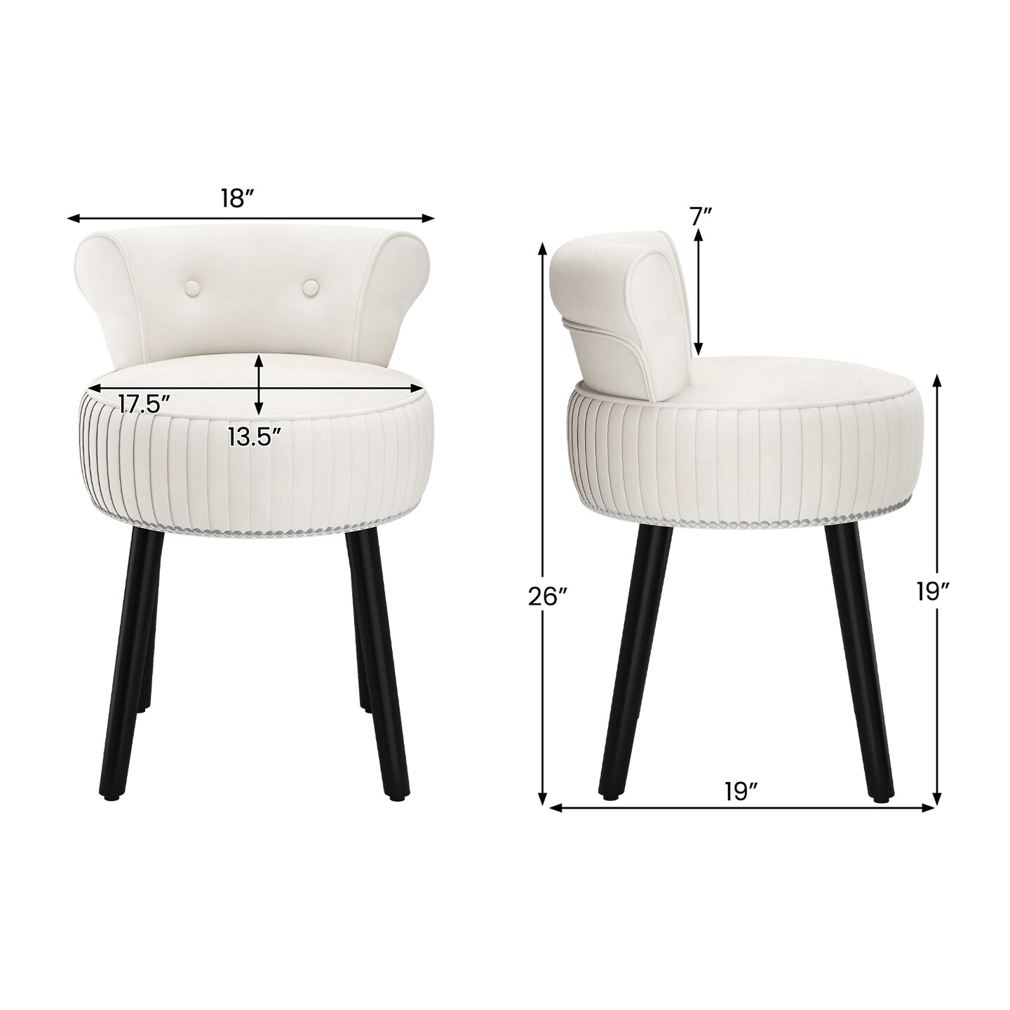 Velvet Vanity Chair with Tufted Back Rubber Wood Frame Small Makeup Stool for Bedroom