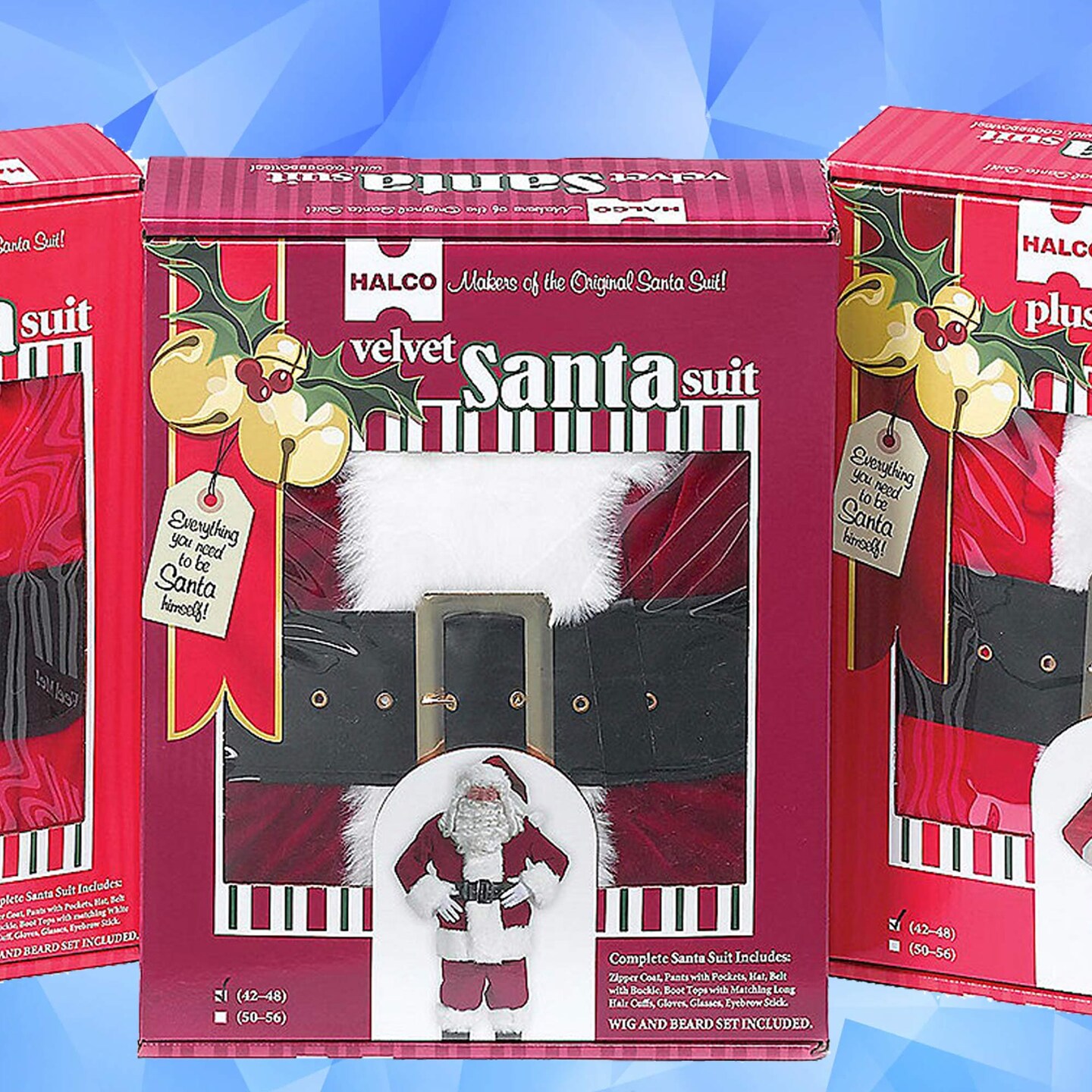 Velveteen Santa Suit Set with Plush Trim, Belt, Gloves, and Boot Tops Included