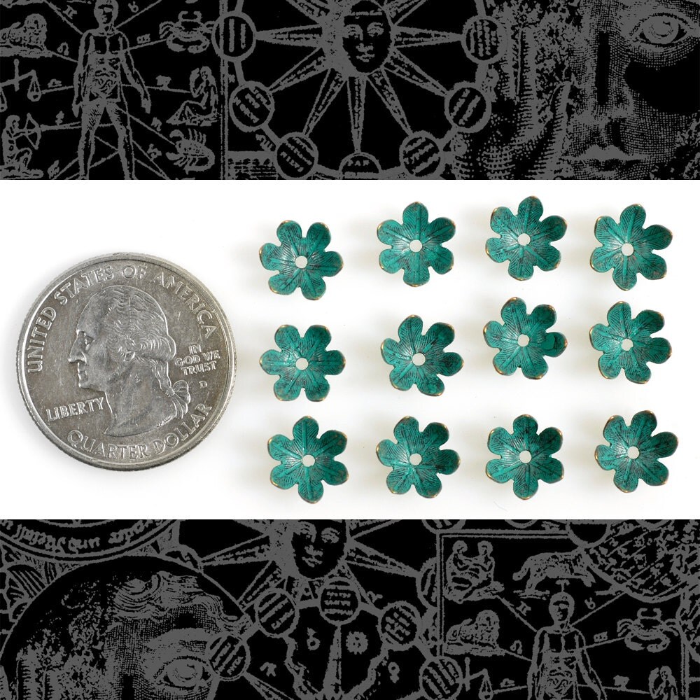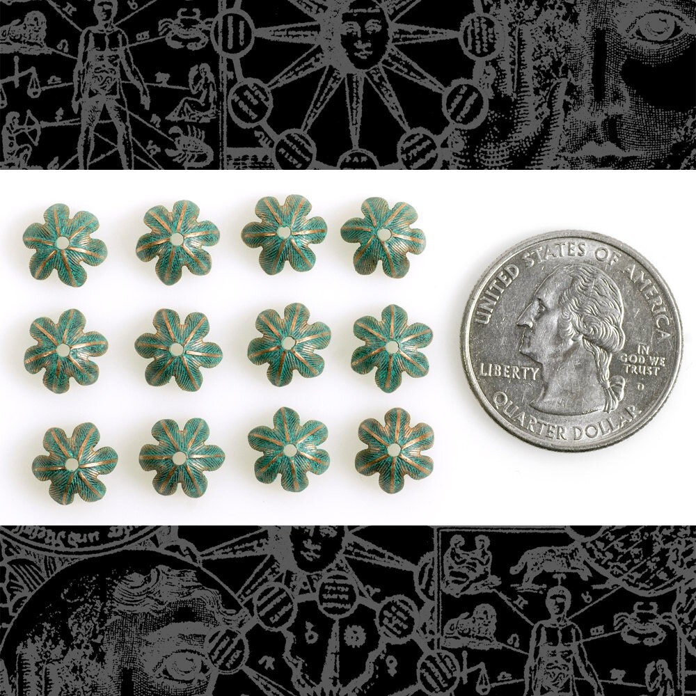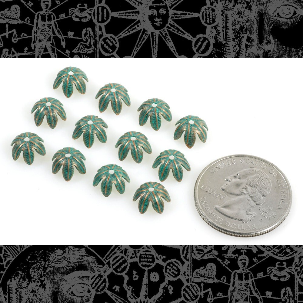 Verdigris Finished Brass 8mm Floral Leafy Bead Caps - Set of Twelve - V-BC12