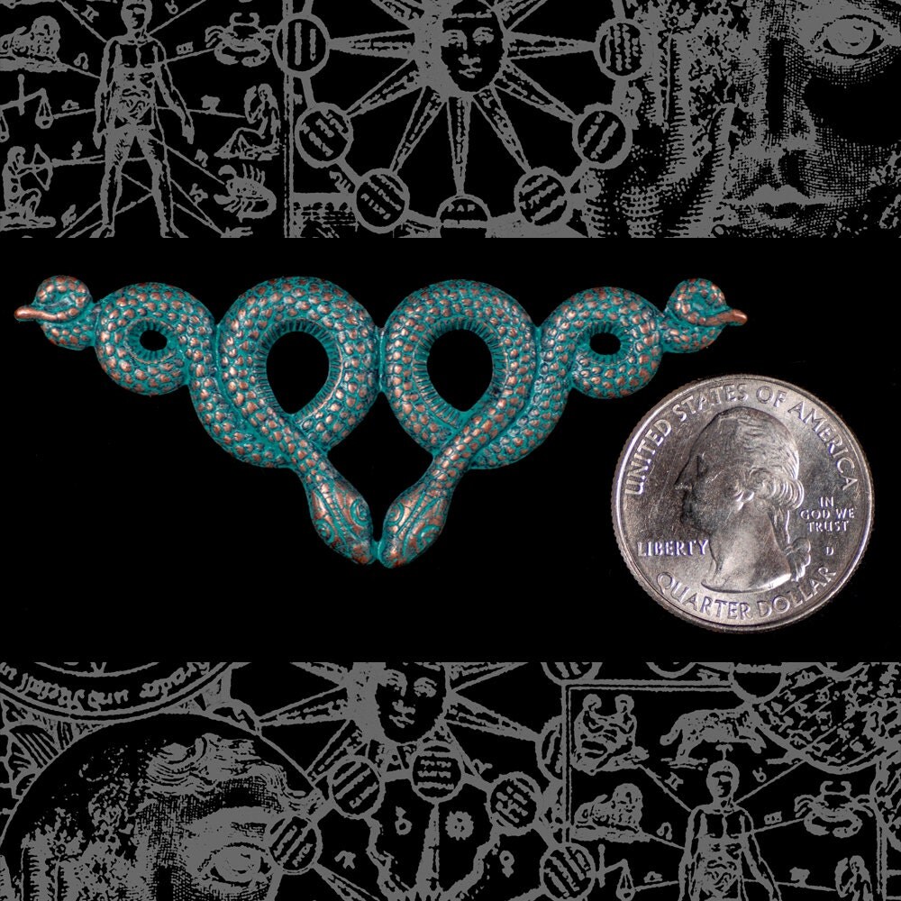 Verdigris Finished Brass Double Snake Centerpiece Pendant Stamping - V-P24