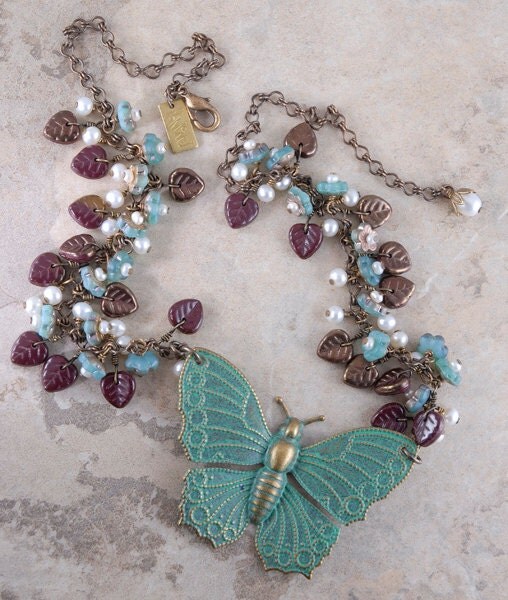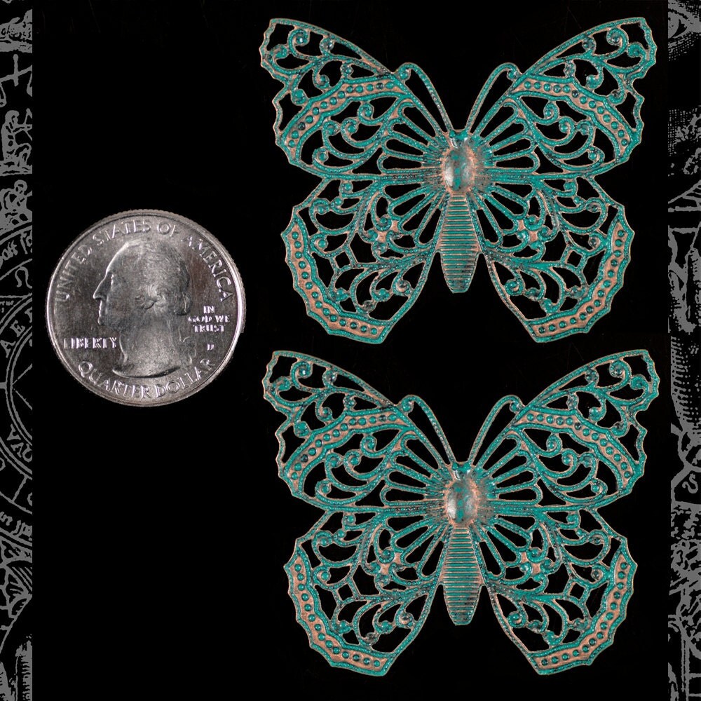 Verdigris Finished Brass Filigree Butterfly Pendants - Set of Two - V-P14