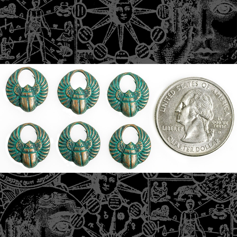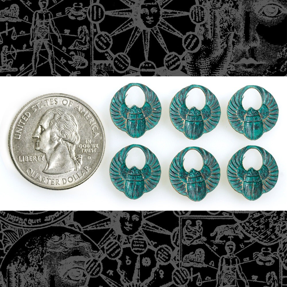 Verdigris Finished Brass Mini Scarab Charms - Set of Six - V-C32