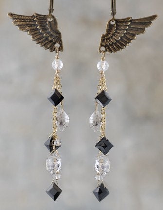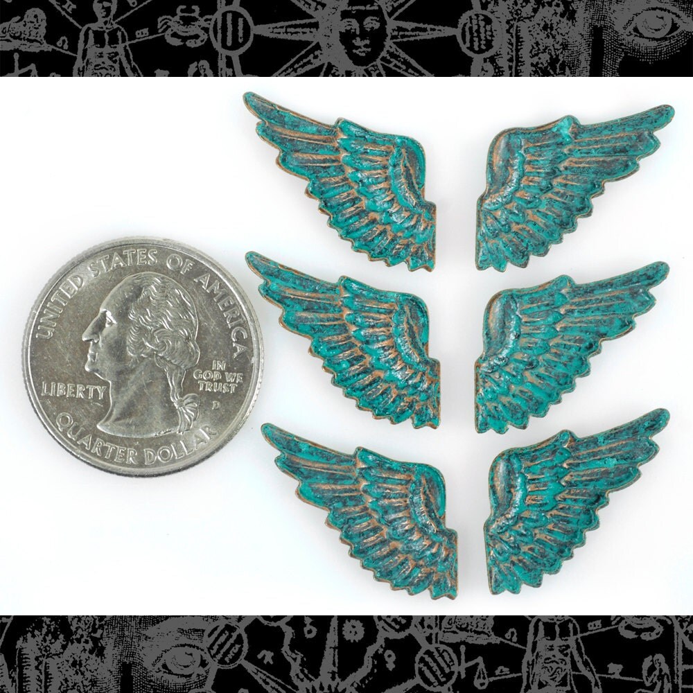 Verdigris Finished Brass Mini Wing Charms Three Sets of Two - V-C31
