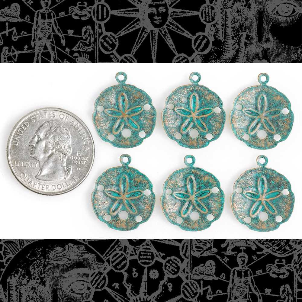 Verdigris Finished Brass Small Sand Dollar Charms - Set of Six - V-C115