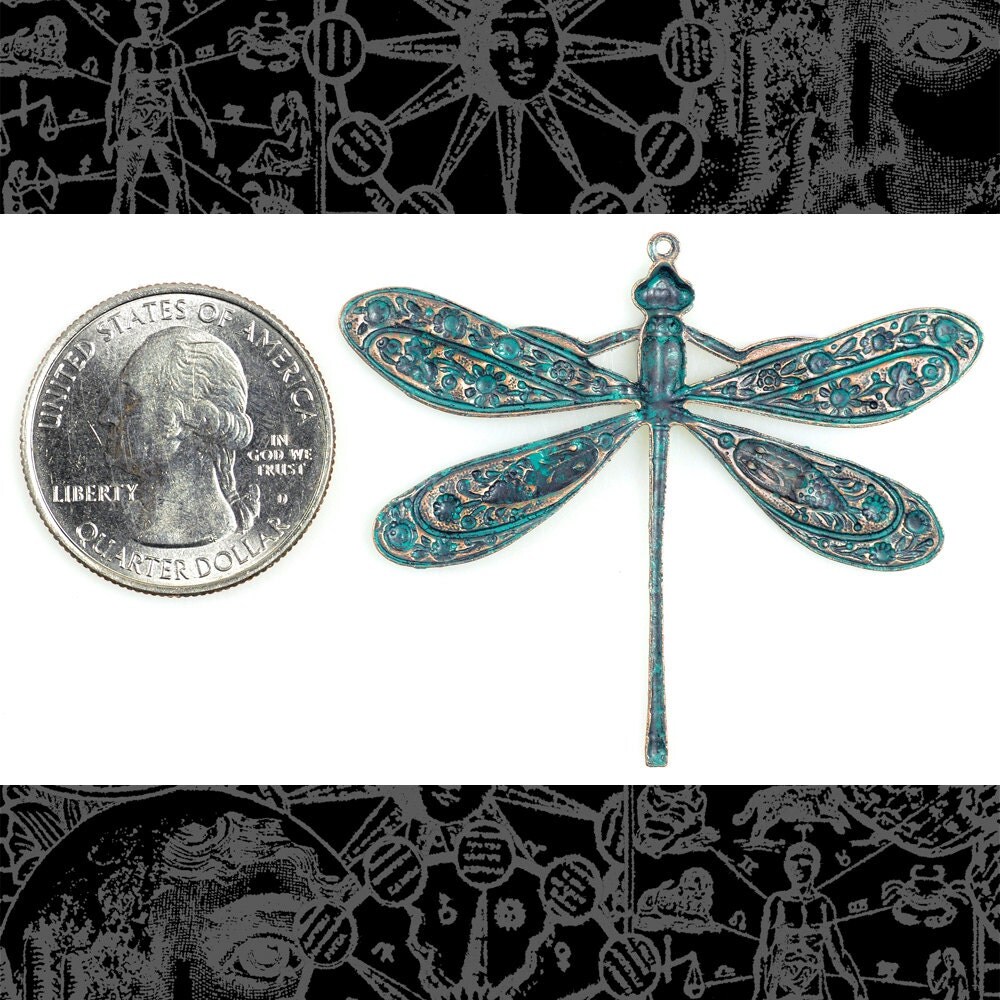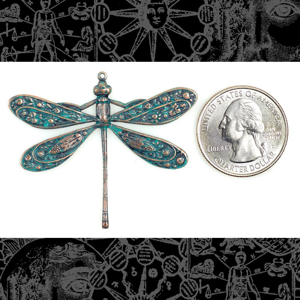 Verdigris Finished Brass Vintage Dragonfly Pendant - V-P01