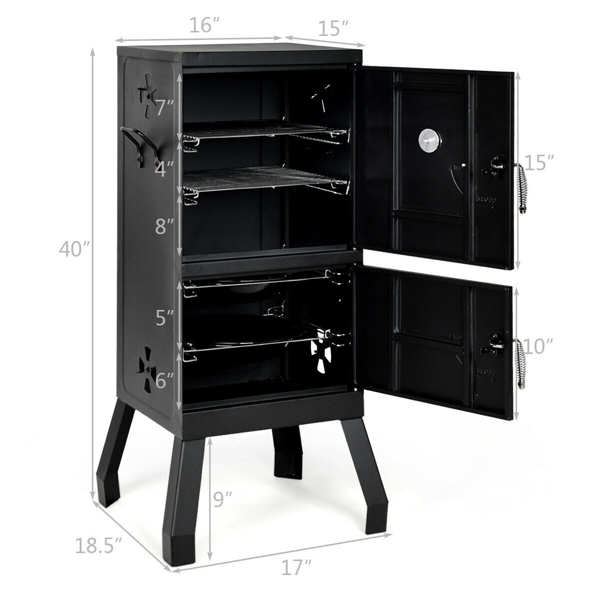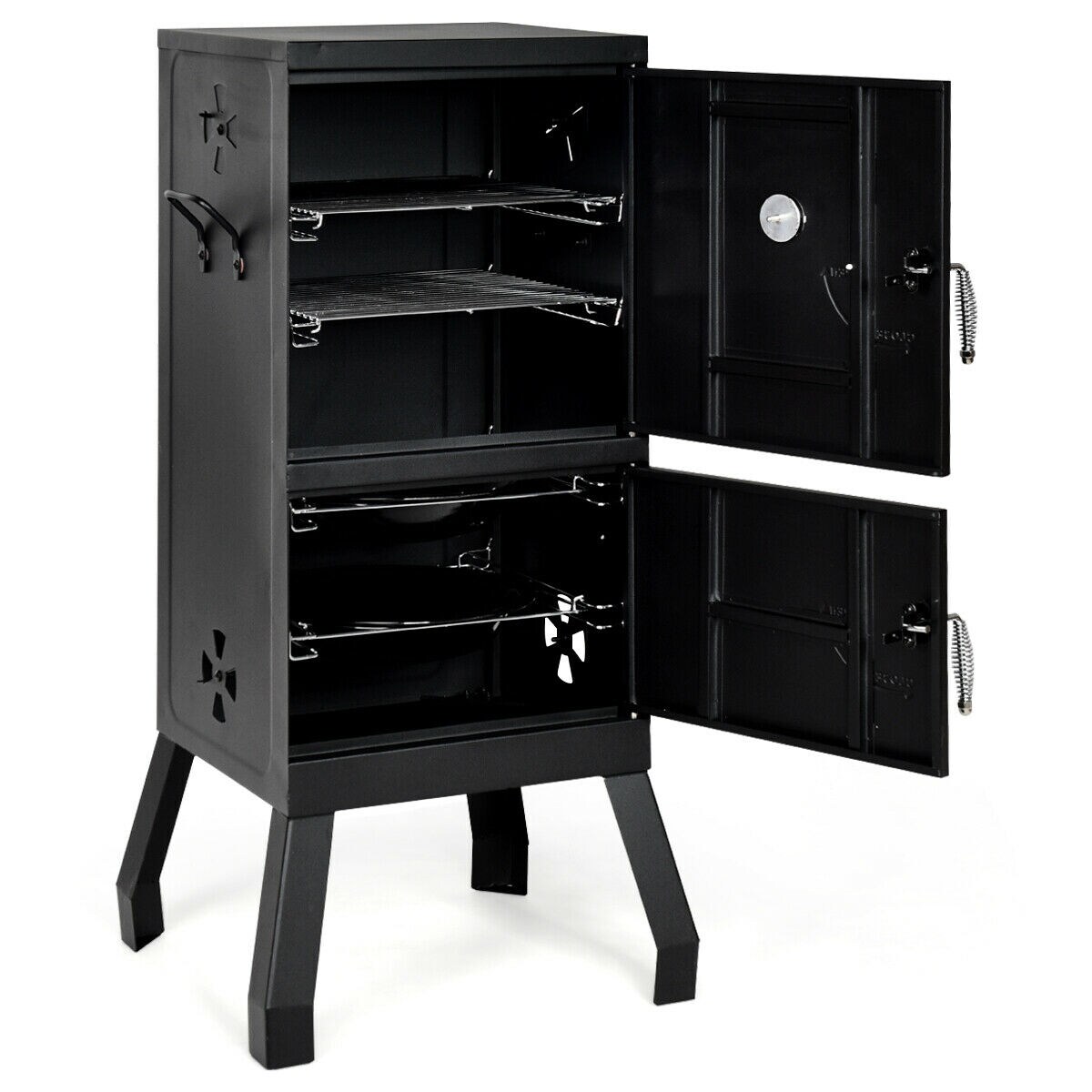 Vertical 2-Tier Outdoor Barbeque Grill with Temperature Gauge