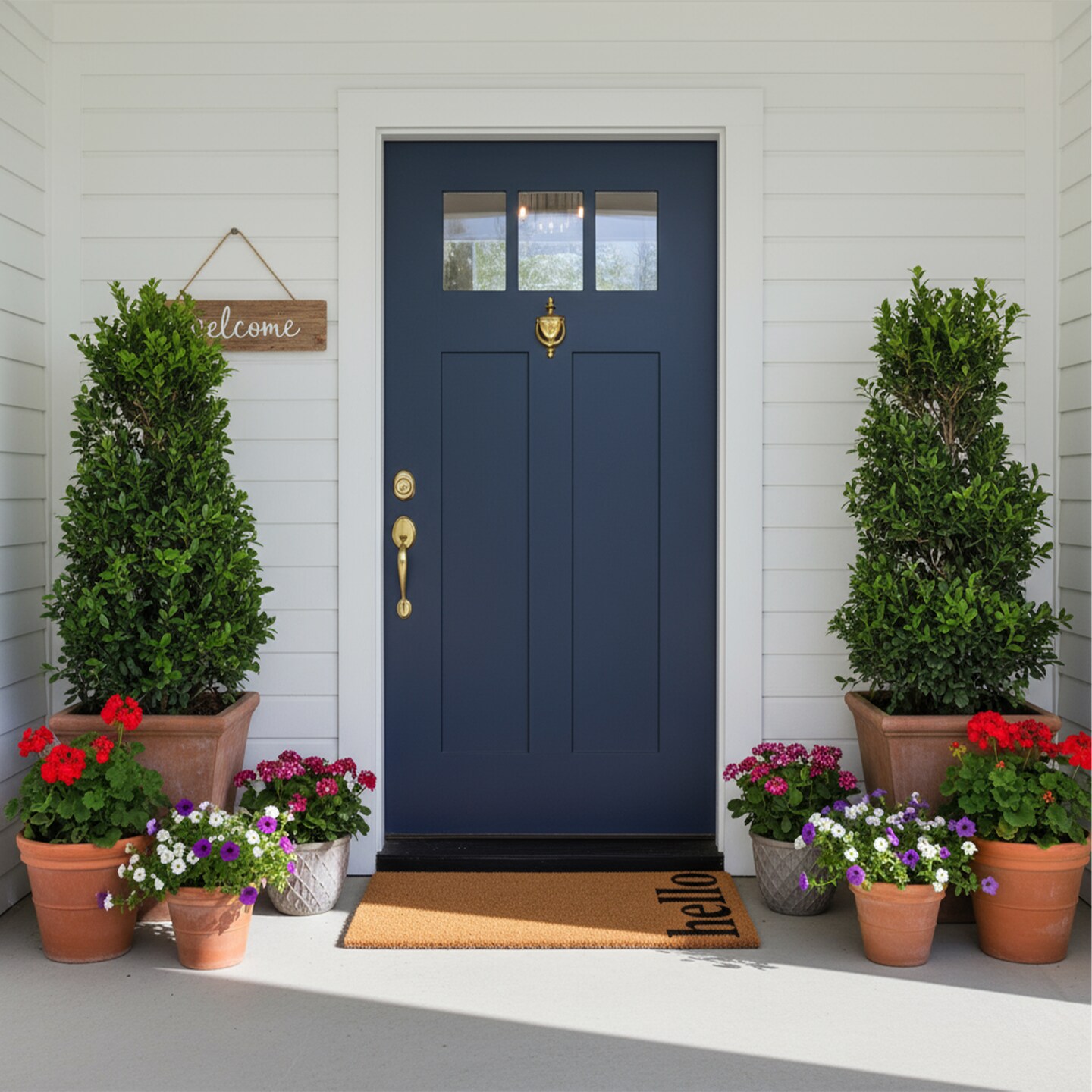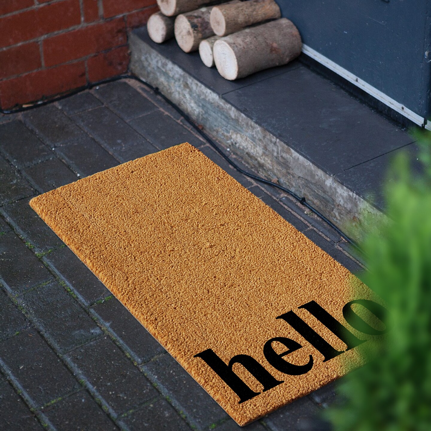Vertical Hello Doormat, Natural/Black