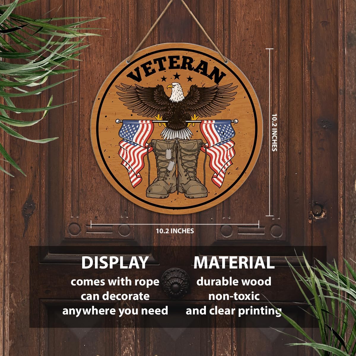 Veterans Day Wall Decor, American Patriotic Round Wooden Hanging Sign Decorations for Man Cave Bar, July 4th Independence Day Memorial Day Wall Decor, Gifts for Veteran Army Dad