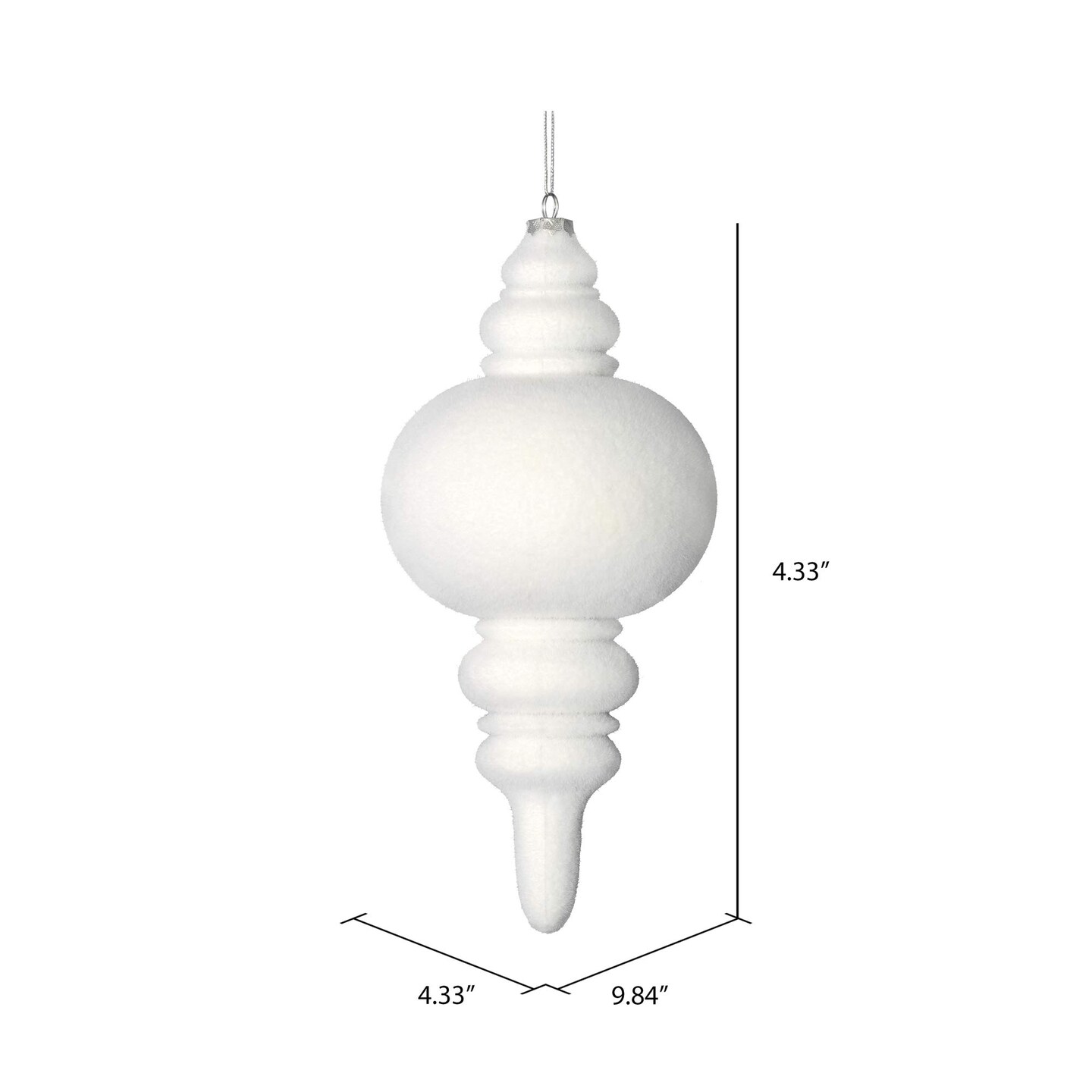 Vickerman 10" White Flocked Finial Ornament 3/Bag - M182411