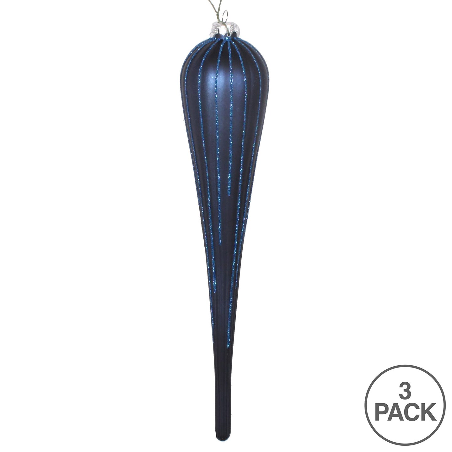 Vickerman 11" Midnight Blue Glitter Drop Orn 3/Bag - MT195031D