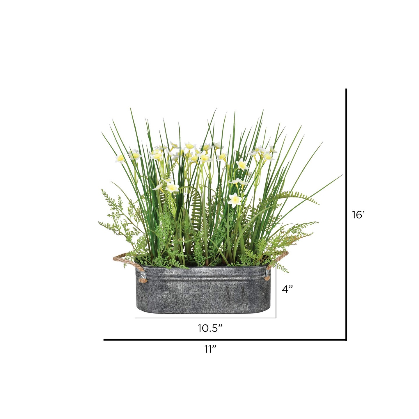 Vickerman 16" Daffodil In Galvanized Pot - FJ190217