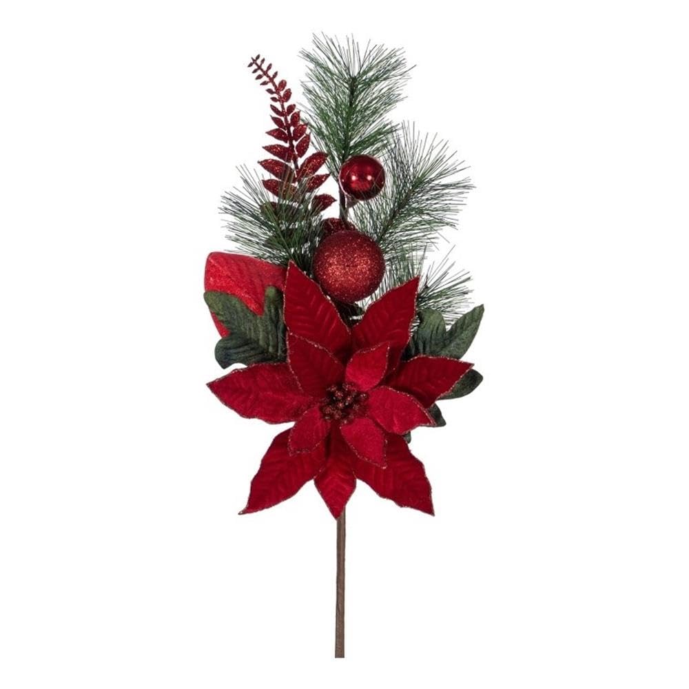 Vickerman 22" Merry Red Poinsettia Ball and Fern Decorated Spray 2 per bag.