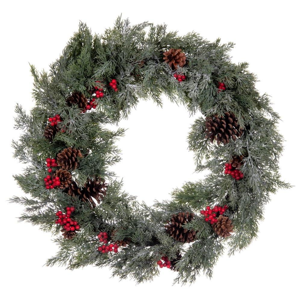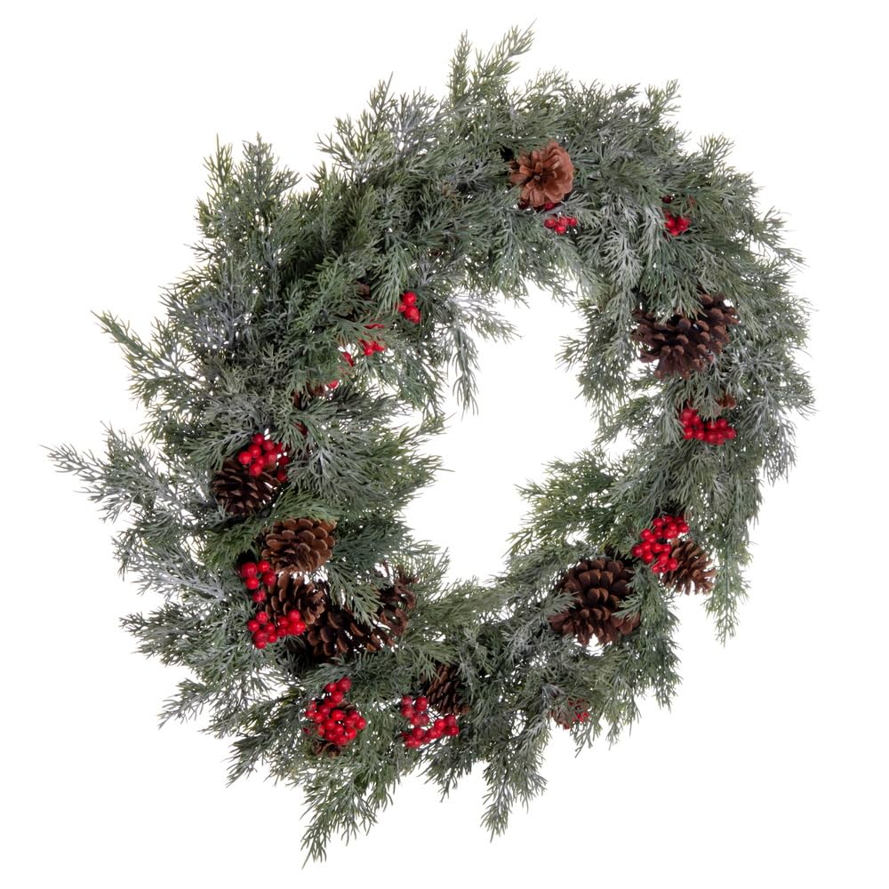 Vickerman 25" Artificial Green Cypress Cone Berry Wreath.