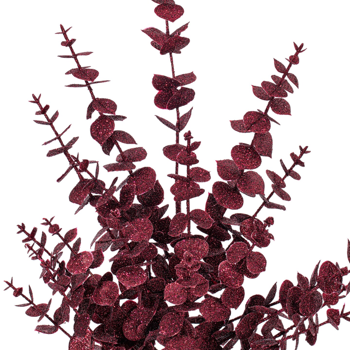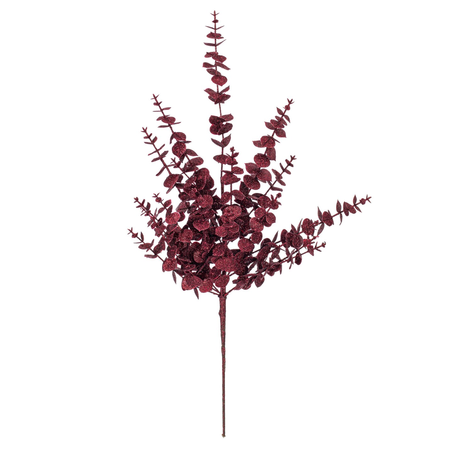 Vickerman 28" Burgundy Artificial Eucalyptus Glitter Spray 2 per bag.