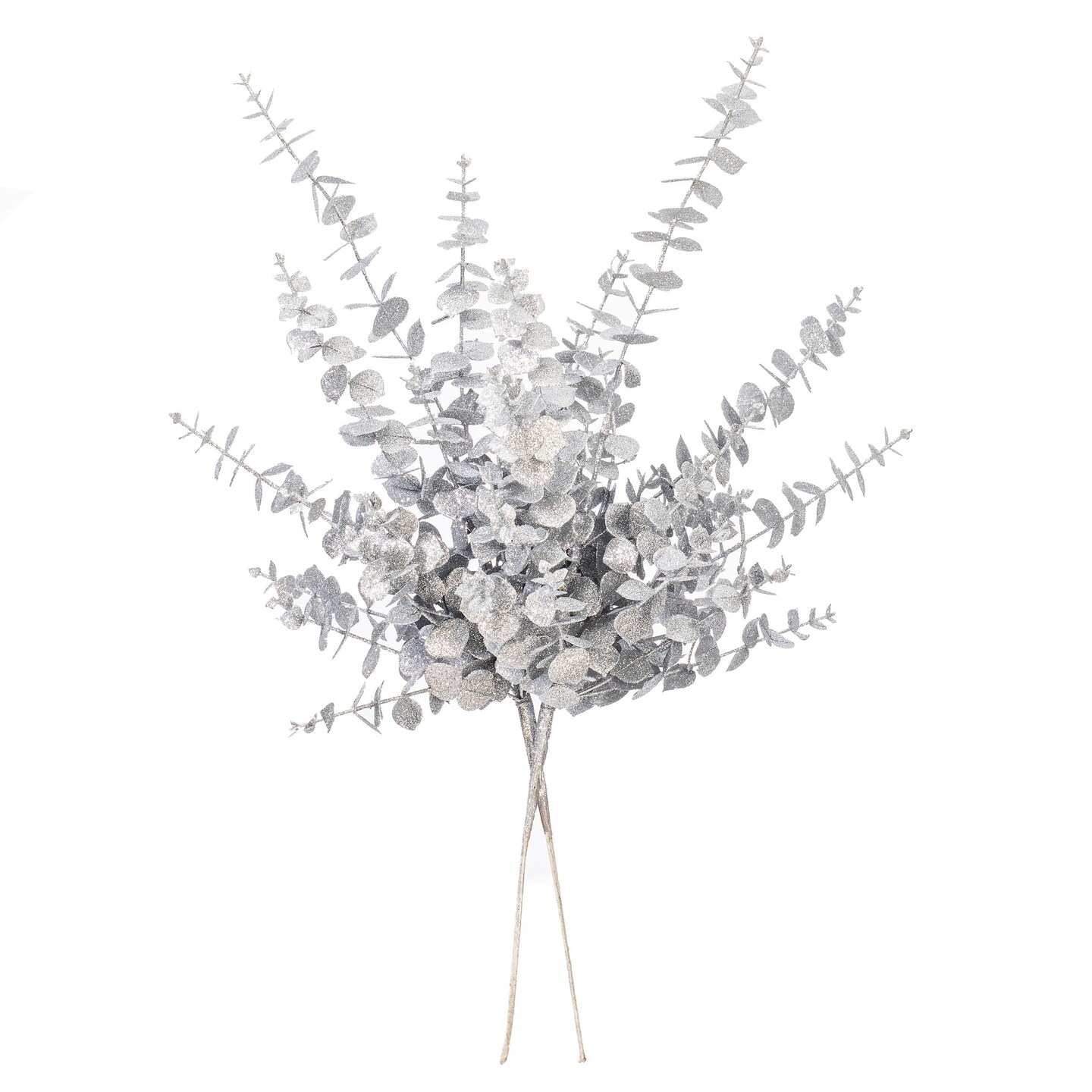 Vickerman 28" Silver Artificial Eucalyptus Glitter Spray 2 per bag.