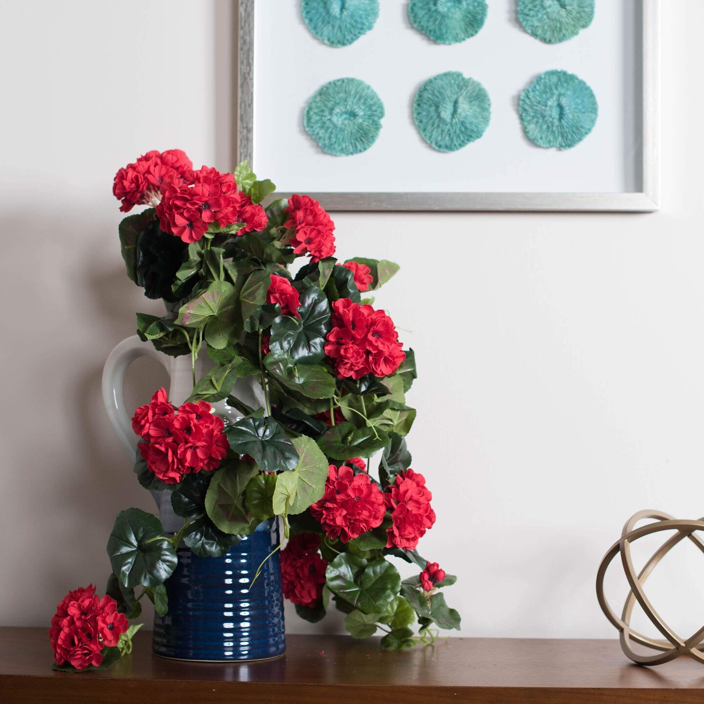 Vickerman 29" Red Geranium Hanging Bush - FL170802
