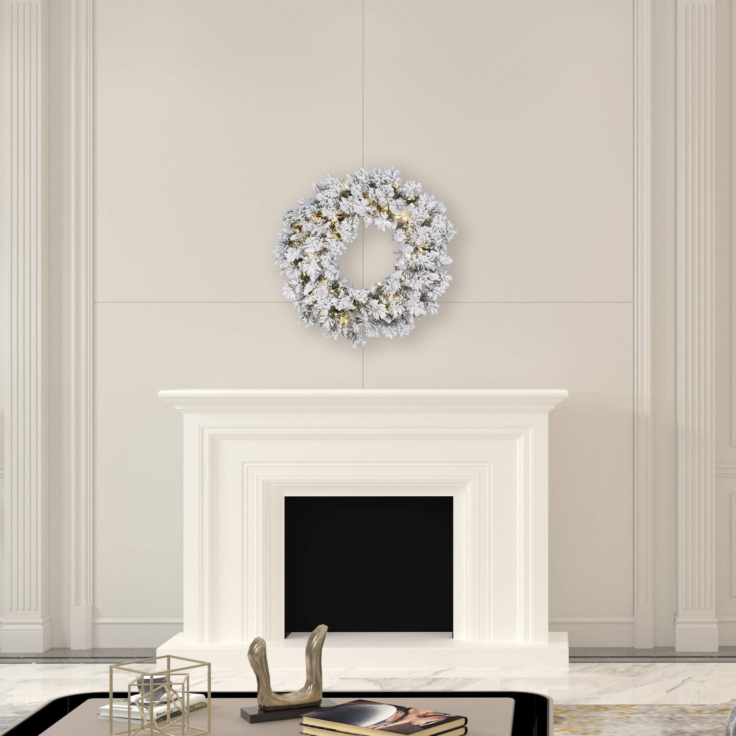 Vickerman 30" Flkd Snow Ridge Wreath LED50 WmWht - A128231LED
