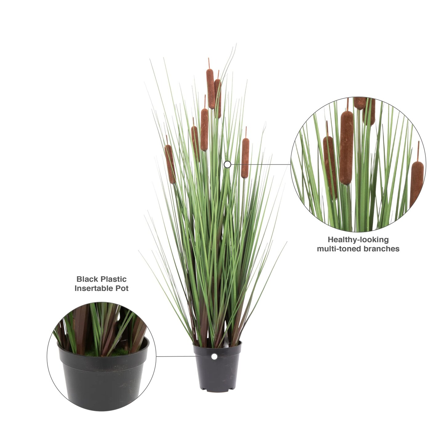 Vickerman 36" Artificial Potted Green Straight Gras and Cattails.