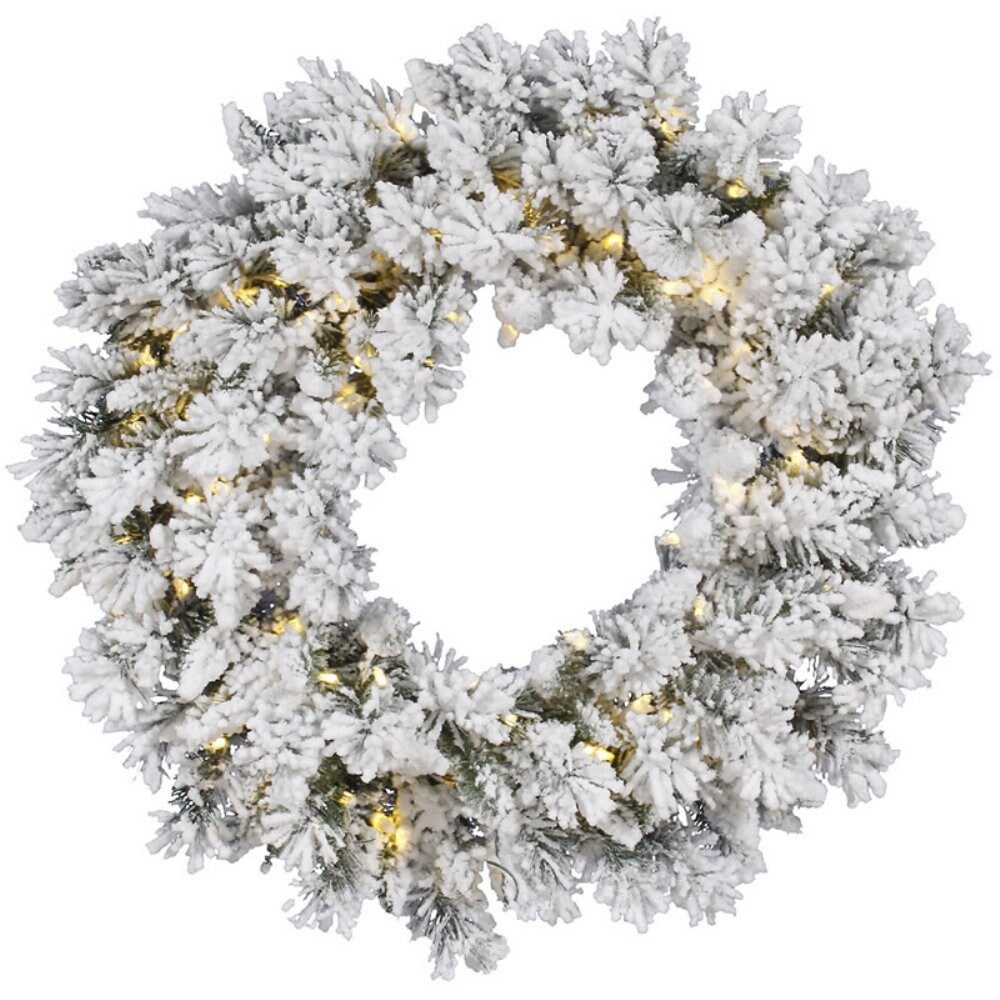 Vickerman 42" Flkd Snow Ridge Wreath LED100 WmWht - A128243LED
