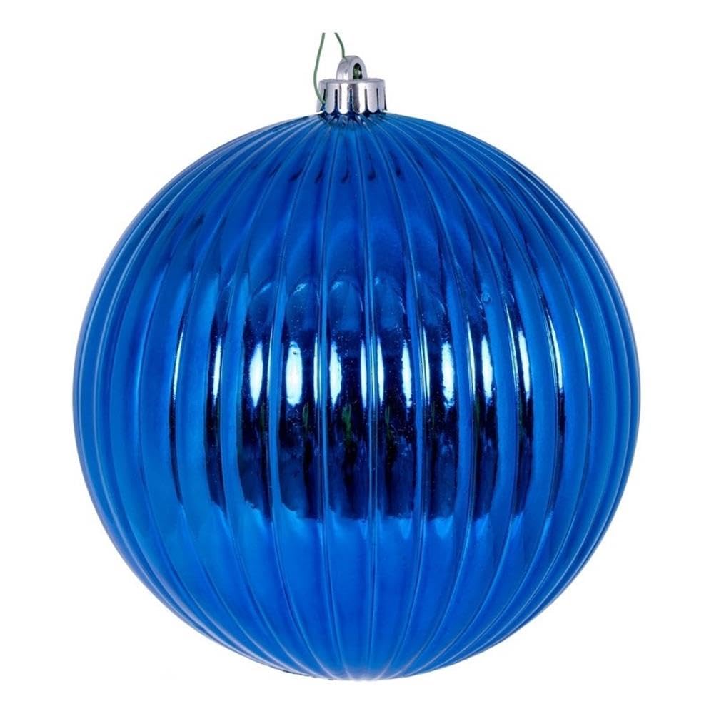 Vickerman 8" Blue Shiny Lined Ball Ornament 1 per Bag.
