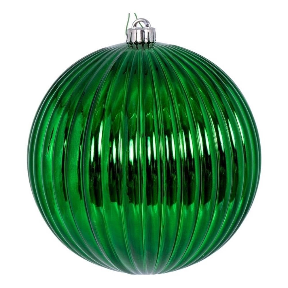 Vickerman 8" Green Shiny Lined Ball Ornament 1 per Bag.