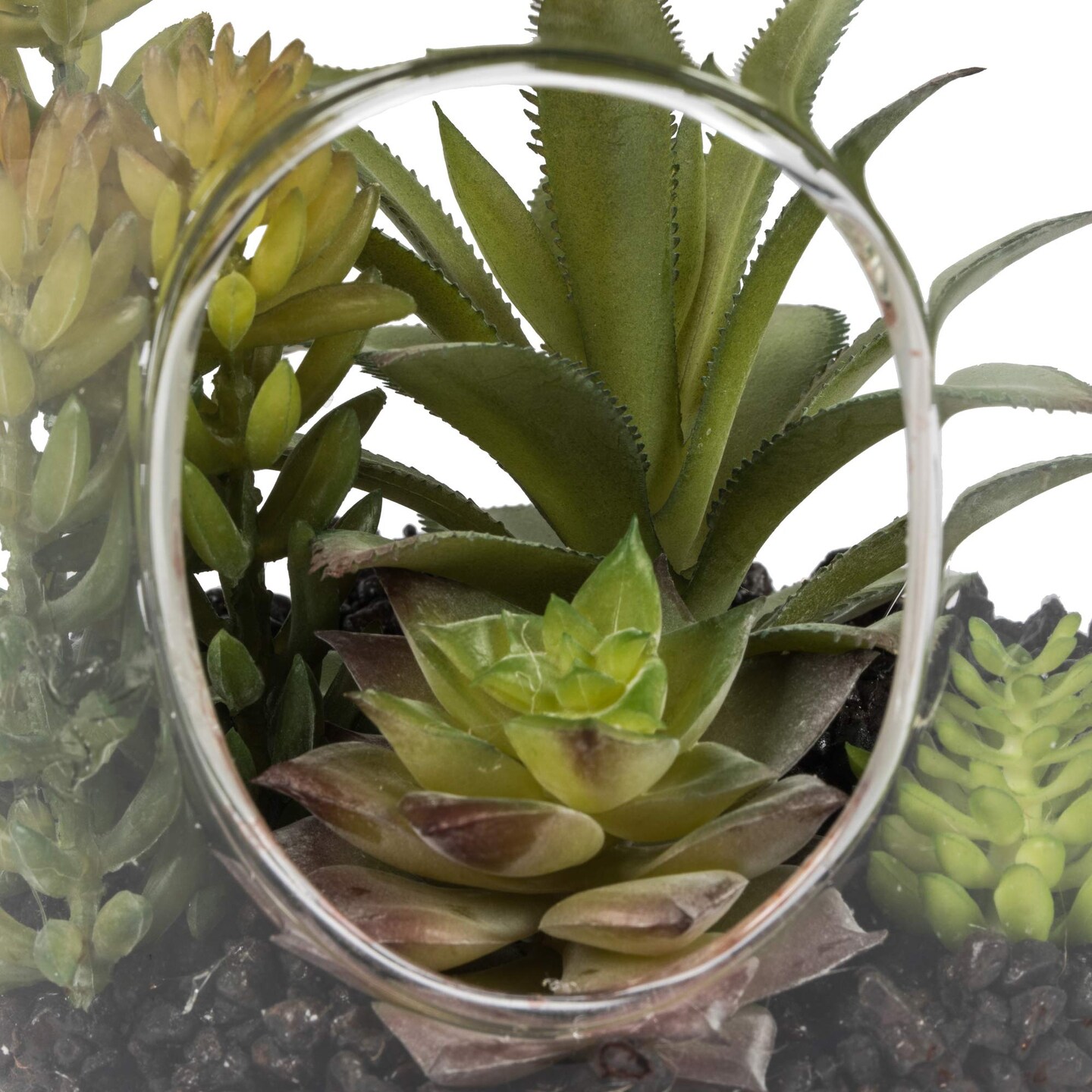 Vickerman 9" Green Asst Succulents in Glass Jar - FH182601