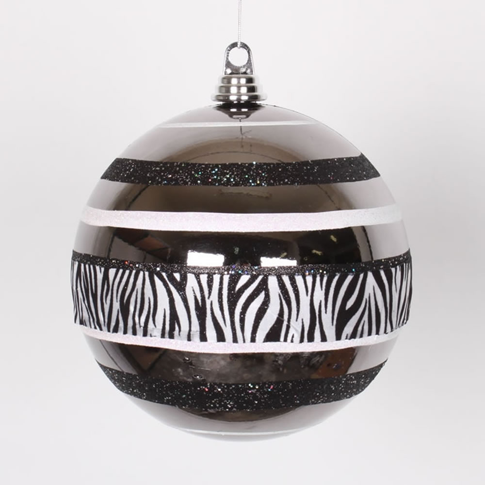 Vickerman Black and White Zebra Print 2-Finish Shatterproof Christmas Ball Ornament 8" (200mm)