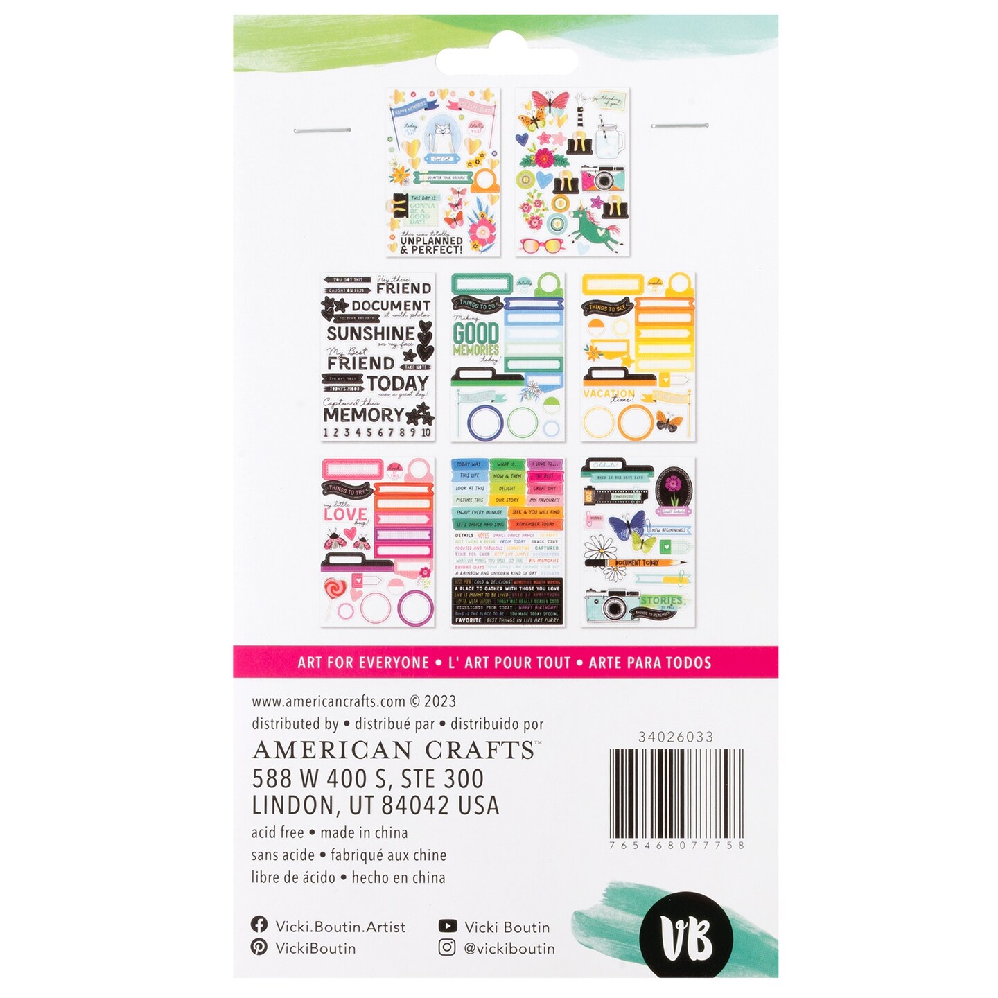 Vicki Boutin Bold And Bright Sticker Book-8 Sheets