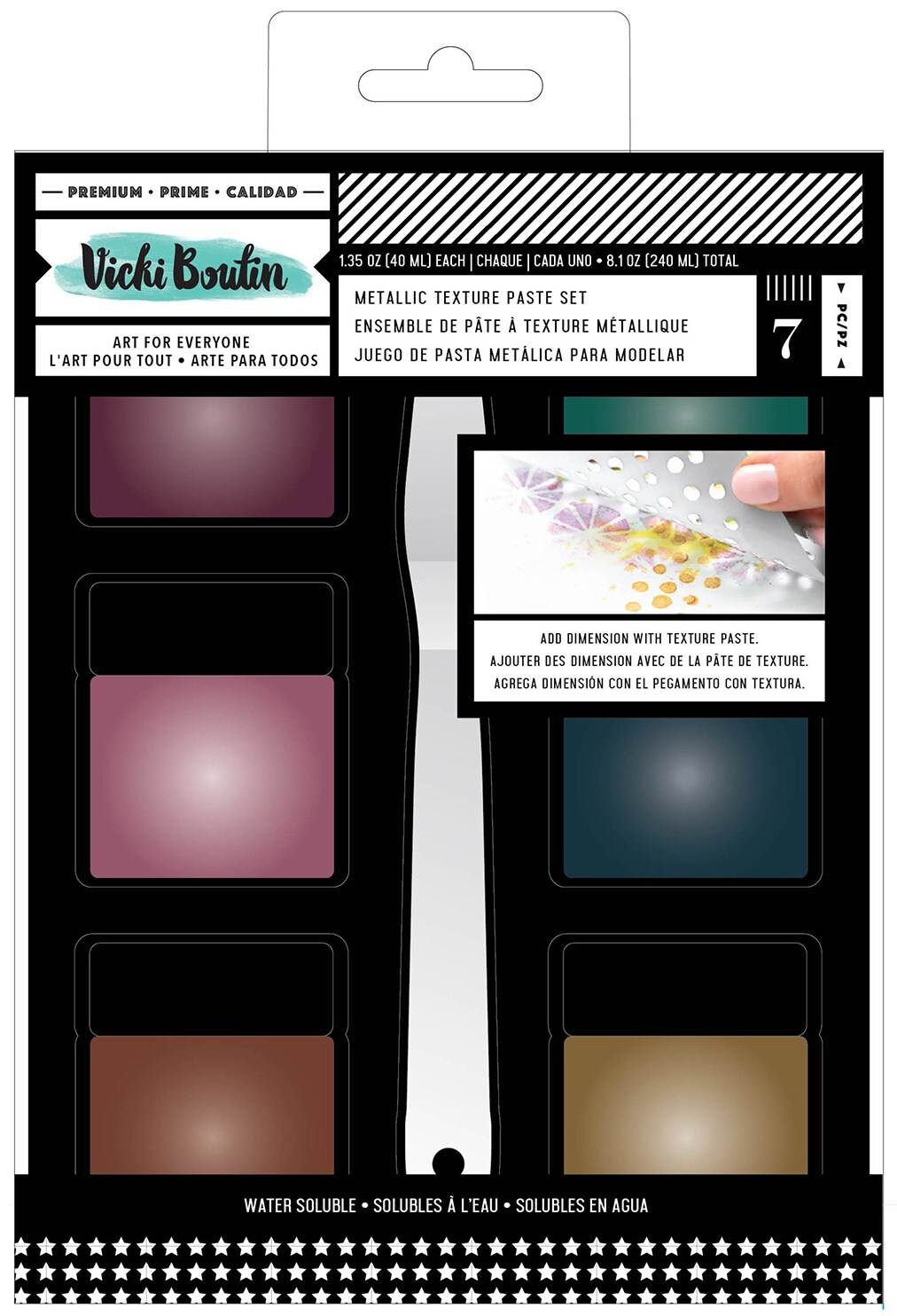 Vicki Boutin Mixed Media Metallic Texture Paste Set-(6) Colors & (1) Palette Knife