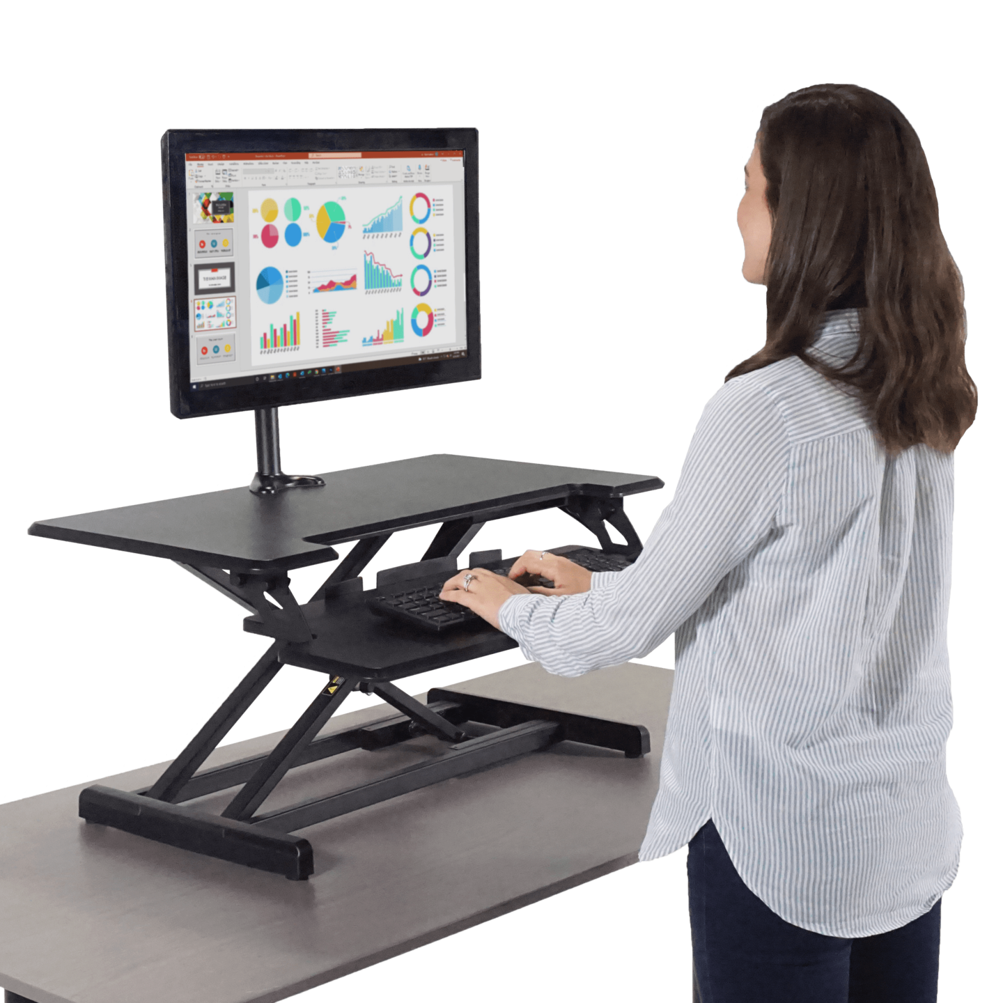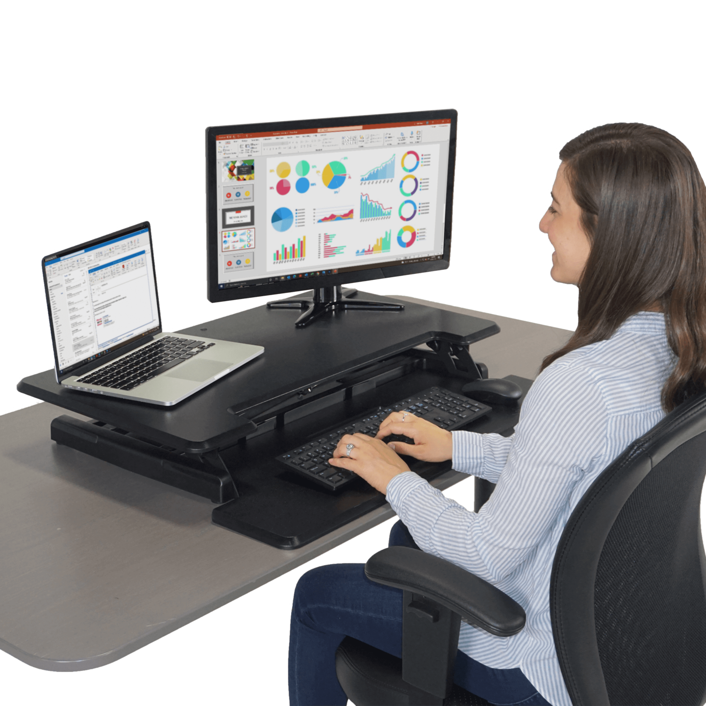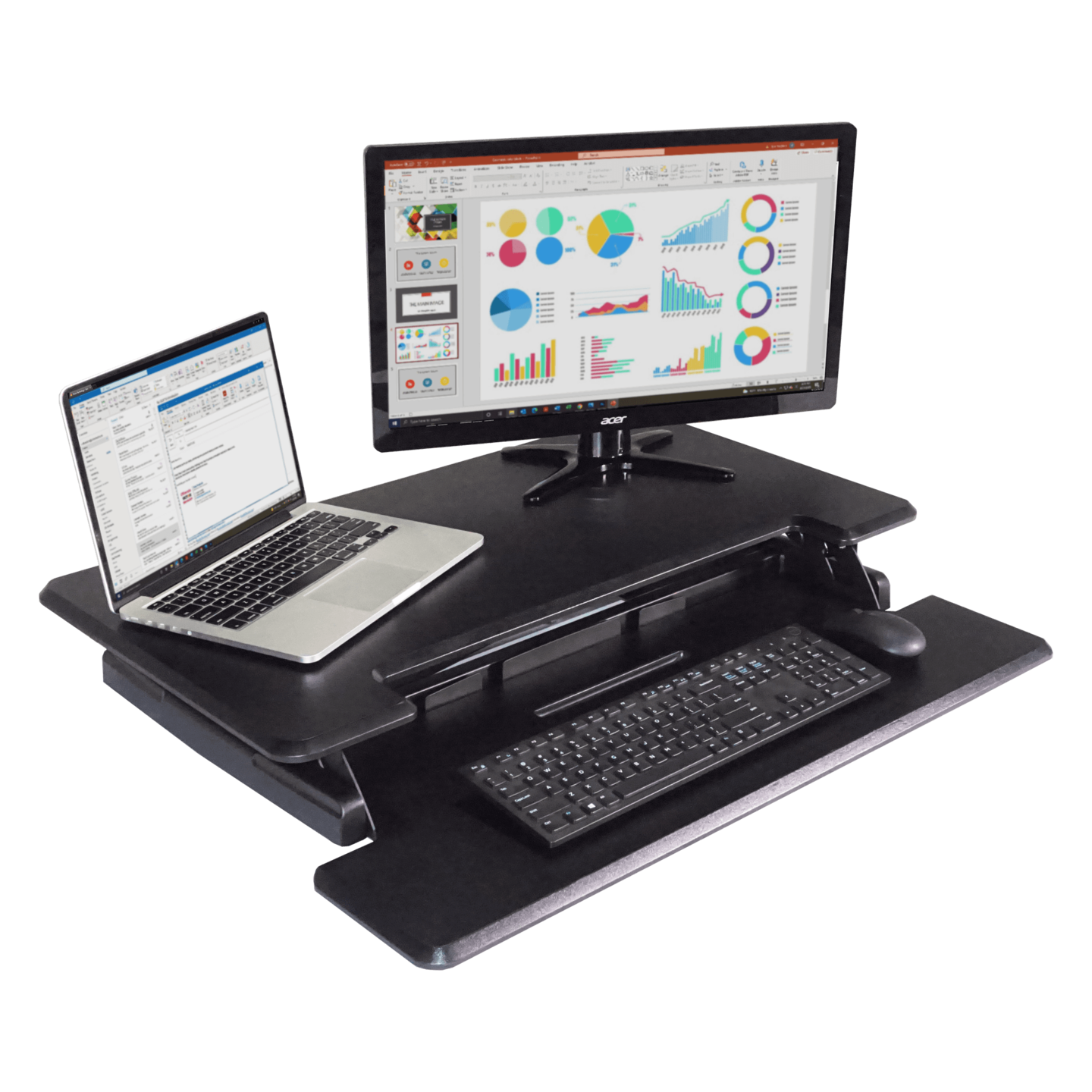 Victor DCX610 Height Adjustable Compact Standing Desk | Black | 33” Wide Sit-Stand Dual Monitor Desk and Laptop Riser Workstation | Compatible with Most Monitor Arms