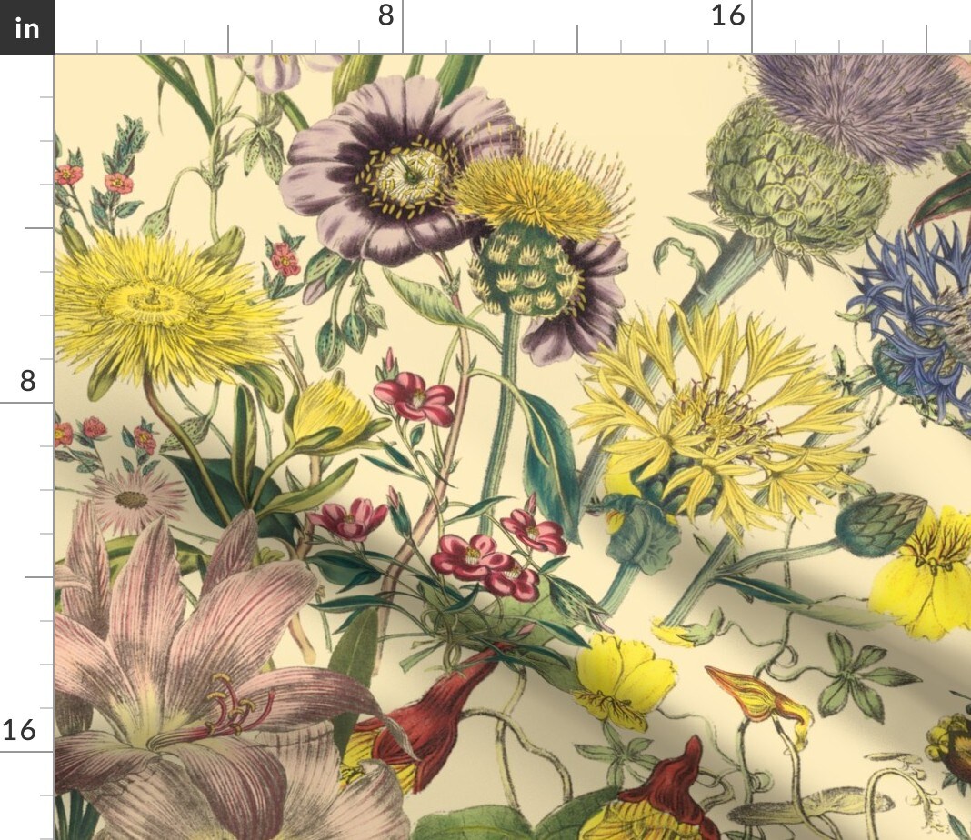 Victorian Flowers Antique Botanical French Garden Cottagecore Shabby Chic Custom Printed Fabric by Spoonflower Various Fabrics by the Yard or Fat Quarter