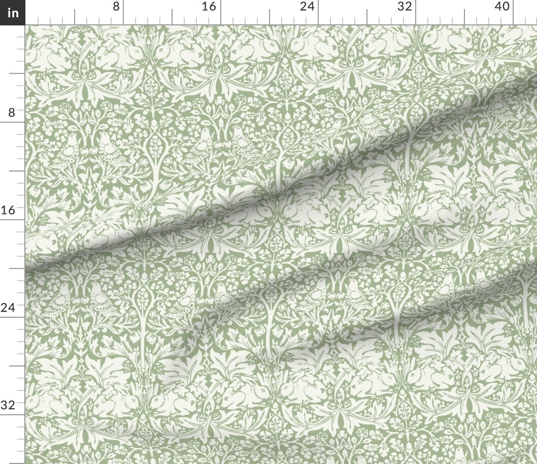 Victorian Garden William Morris Floral Vintage Arts And Crafts Historical English Cottage Rabbit Flowers Antique Green Botanical Edwardian Custom Printed Fabric by Spoonflower Various Fabrics by the Yard or Fat Quarter