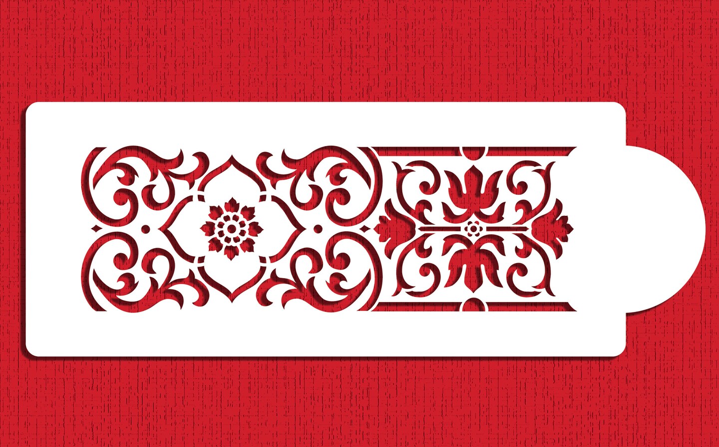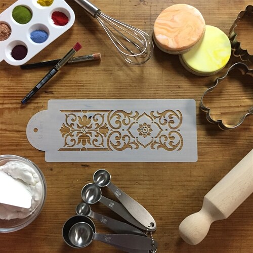 Victorian Scroll Cake Stencil | C005 by Designer Stencils | Cake Decorating Tools | Baking Stencils for Royal Icing, Airbrush, Dusting Powder | Reusable Plastic Food Grade Stencil for Cakes & Cookies | Easy to Use & Clean Cake & Cookie Stencil