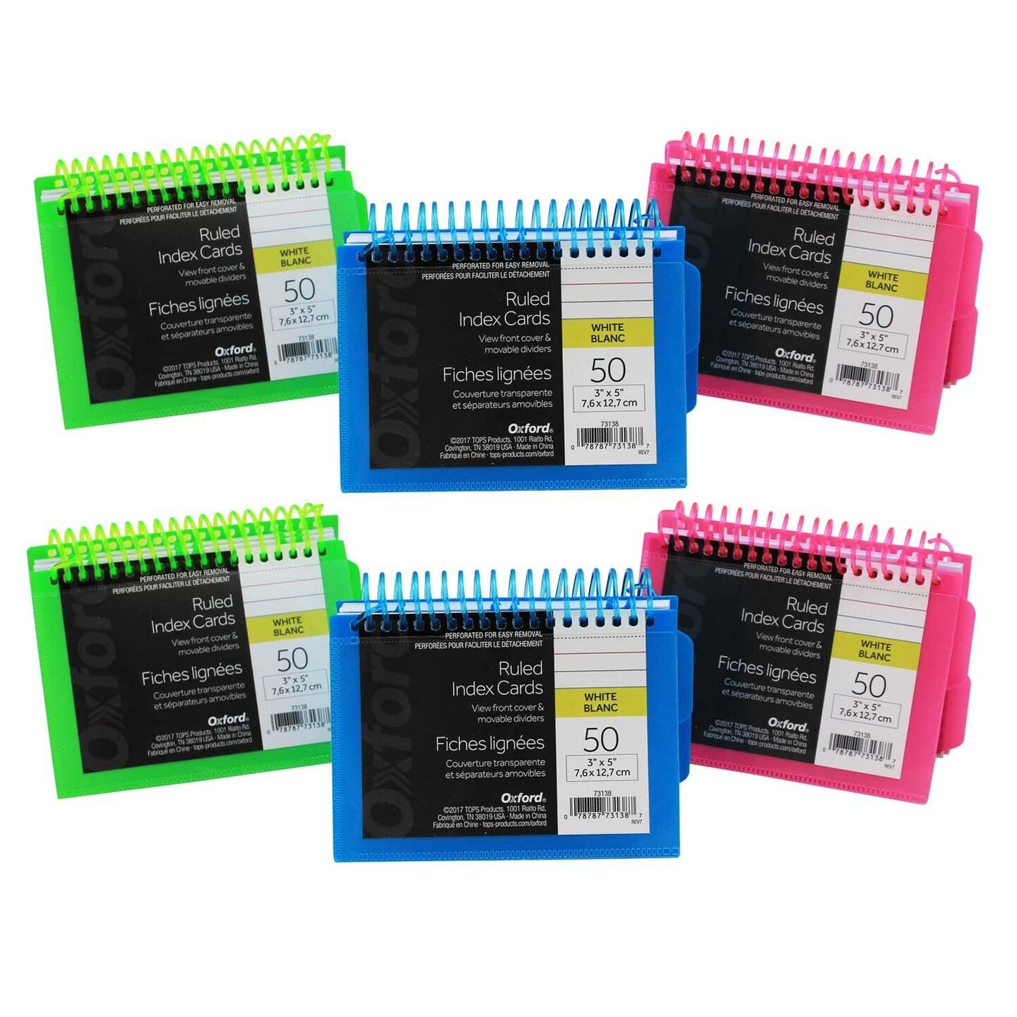 View Front Spiral Index Cards 3" x 5" Poly Cover, Pack of 6