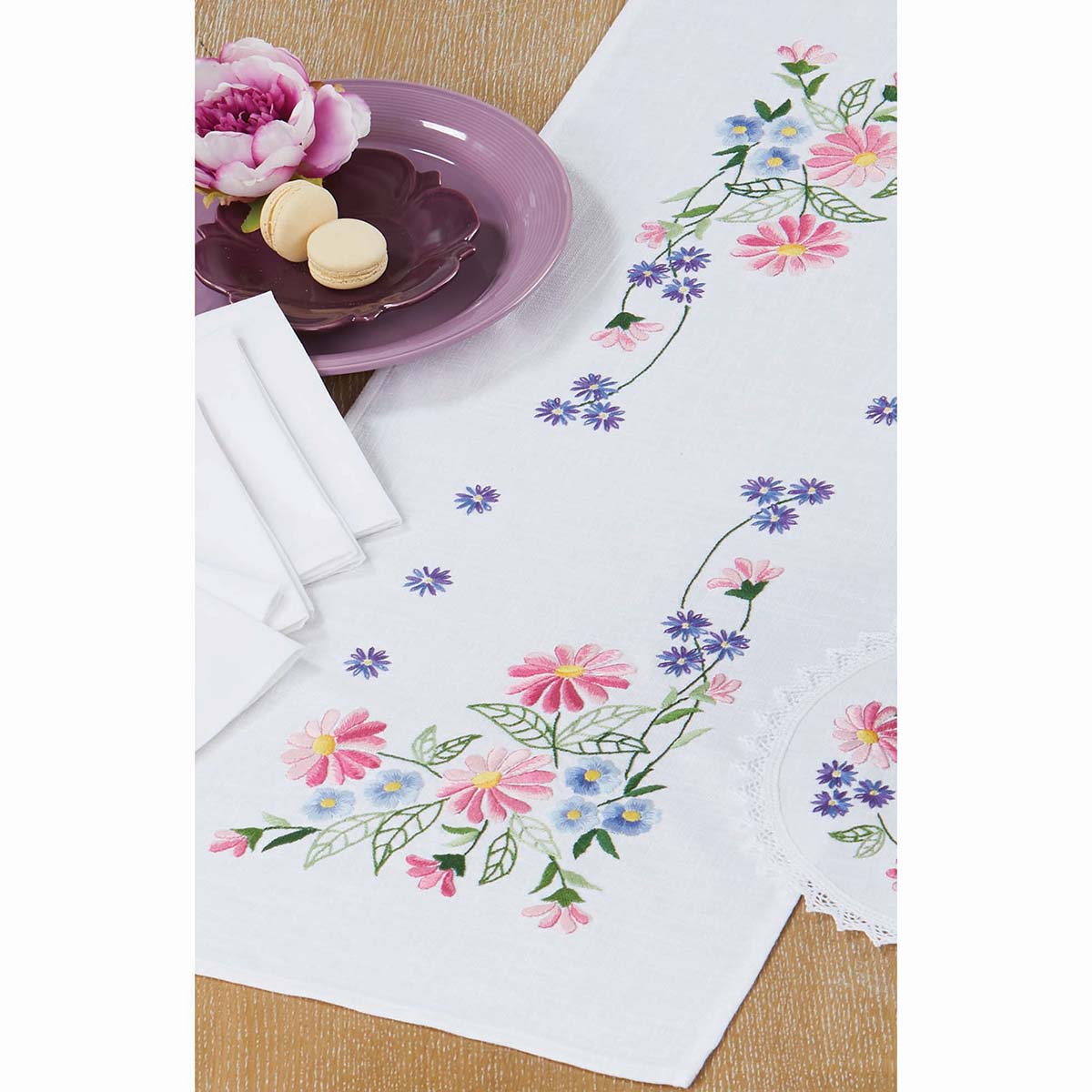 Village Linens Gerberas Runner Stamped Embroidery