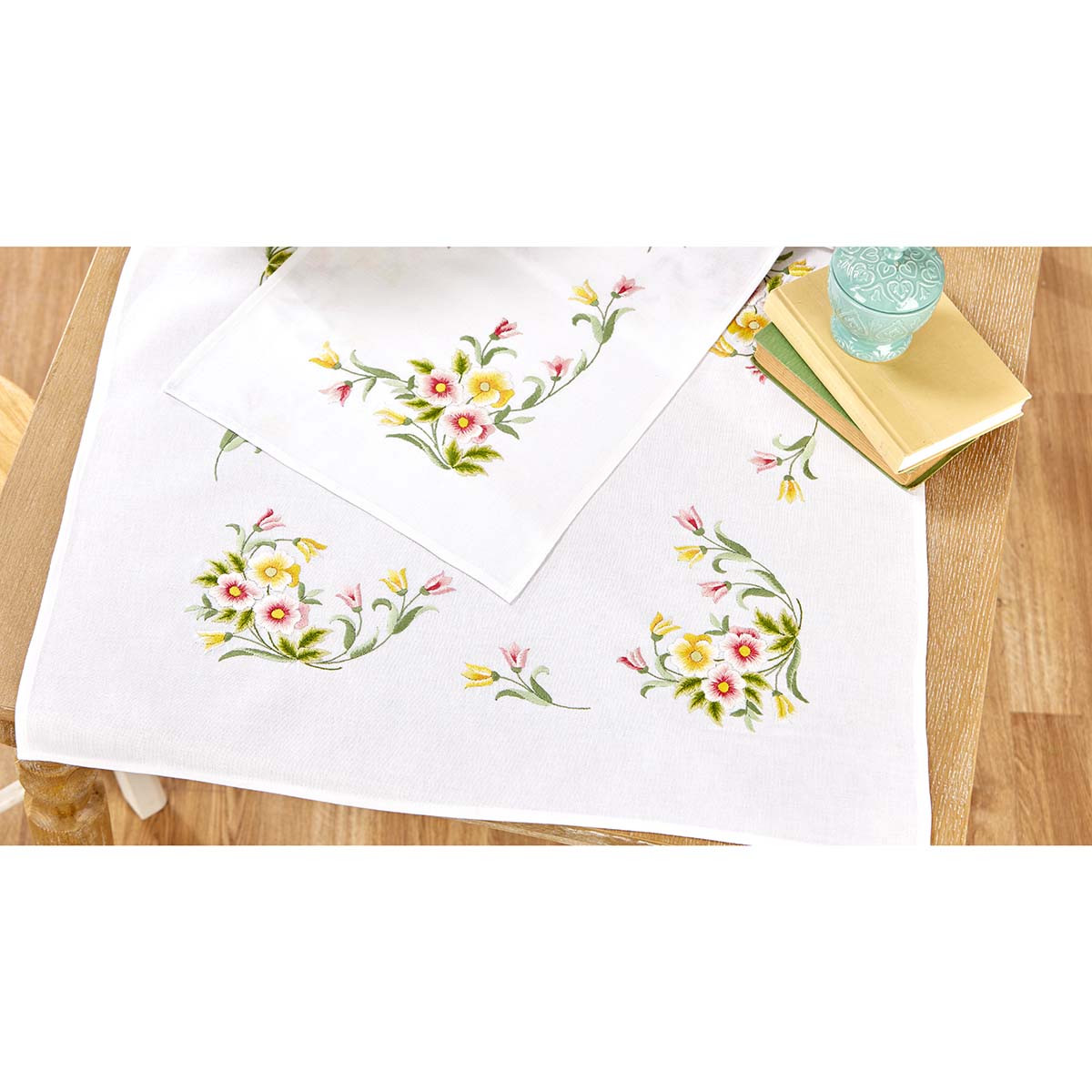 Village Linens Sweet Briar Table Topper Stamped Embroidery Kit