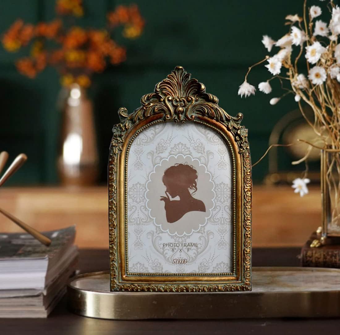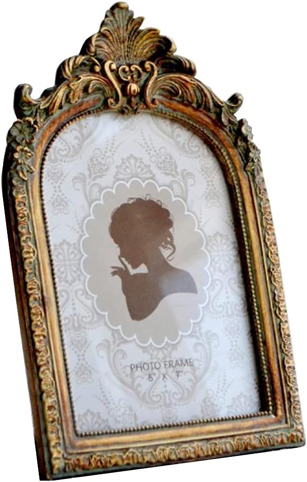Vintage 5x7 Picture Frame Antique OrnateTable Top and Wall Mounting Photo Frame(Bronze Gold)9.6"L x 6.2"W