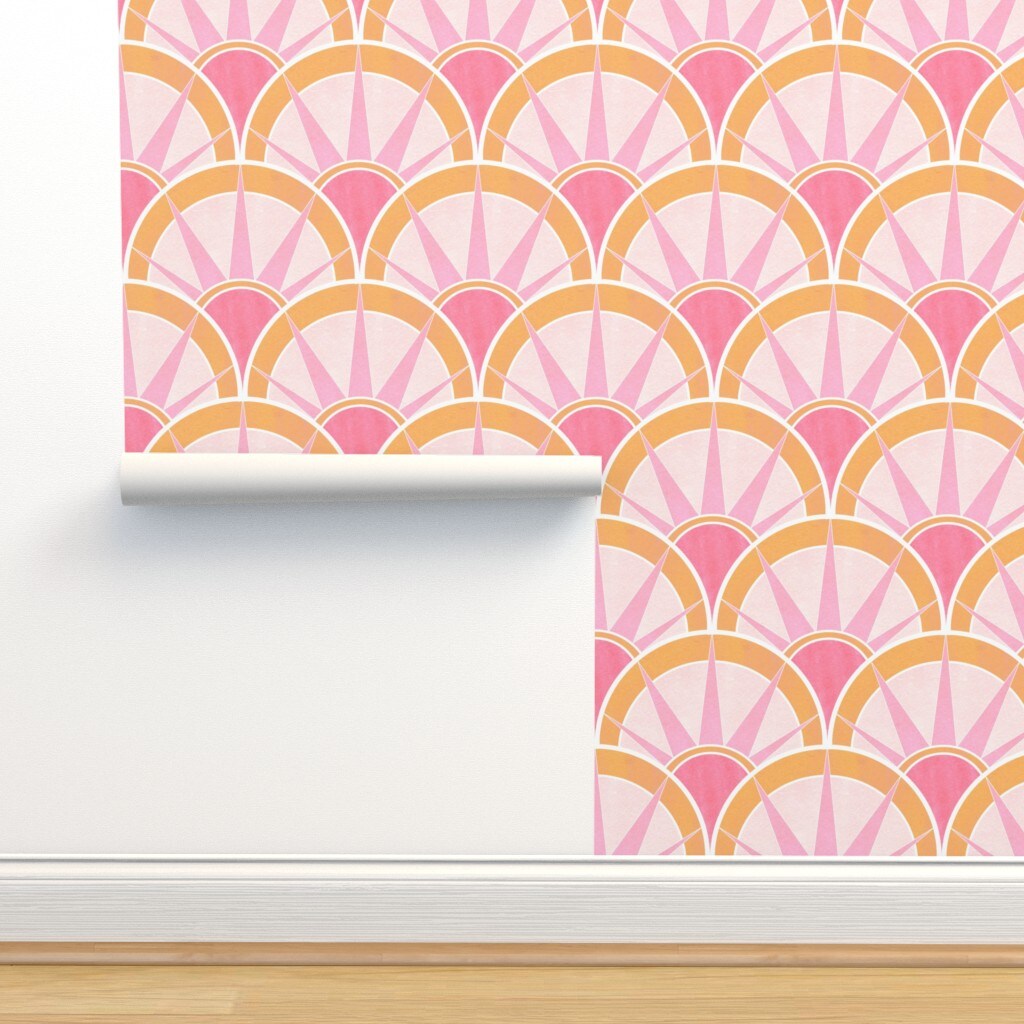 Vintage Art Deco Feminine Pastels Inspired Retro Pattern Twenties 1920S Prohibition Pink And Orange Custom Removable Wallpaper by Spoonflower Peel & Stick Wallpaper 2FT Wide