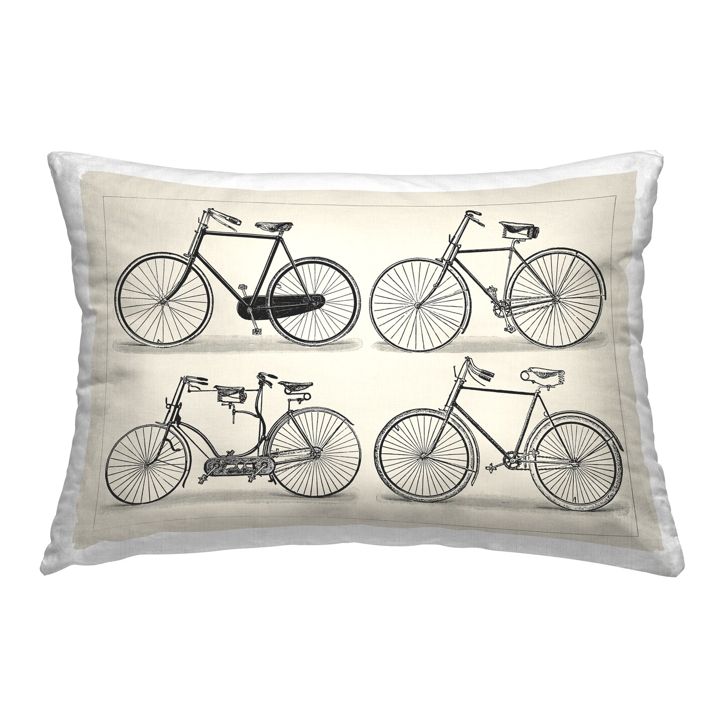 Vintage Bicycles on Beige Decorative Printed Throw Pillow Design by Vision Studio, 14 x 7 x 20