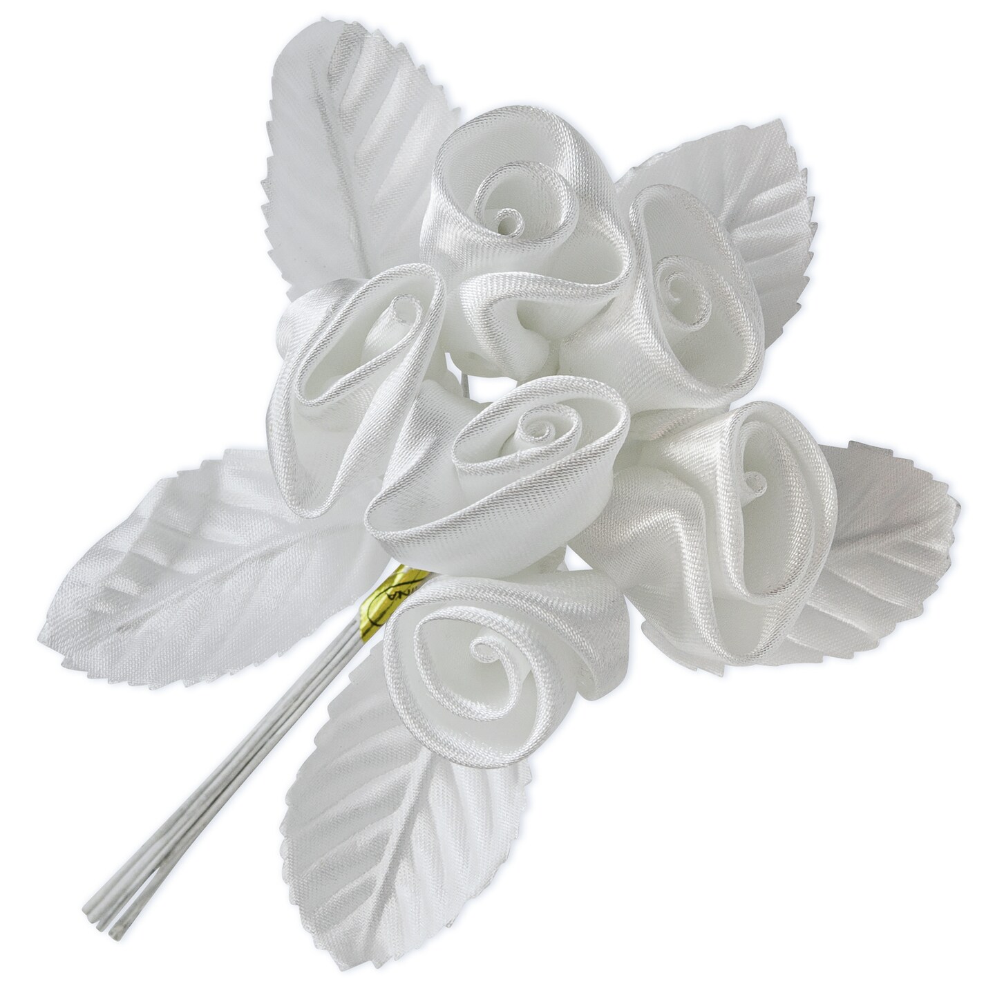 Vintage Bridal Satin Rose Buds with Leaves Stem