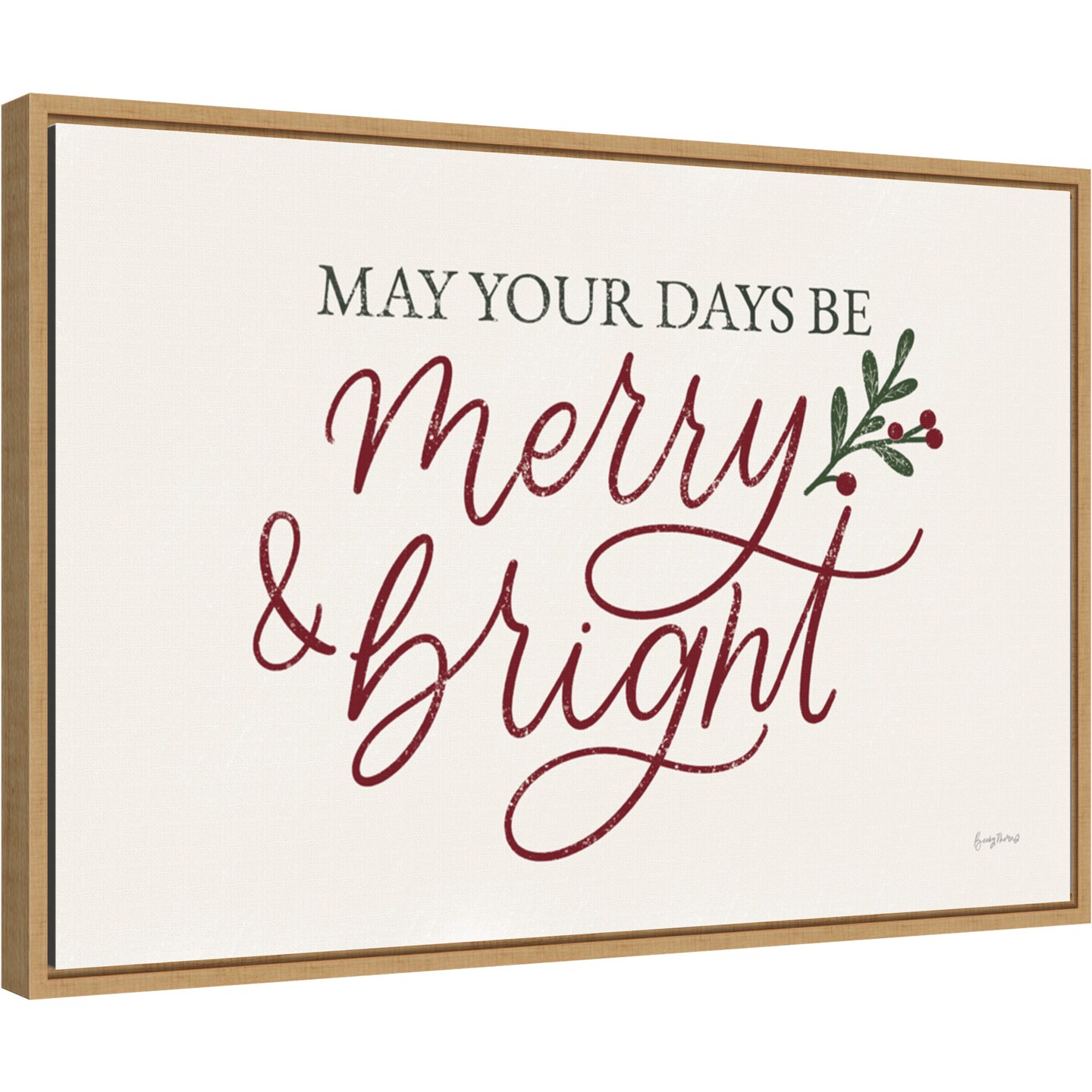 Vintage Christmas V Red by Becky Thorns 23-in. W x 16-in. H. Canvas Wall Art Print Framed in Natural