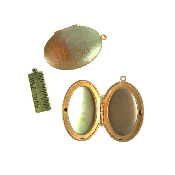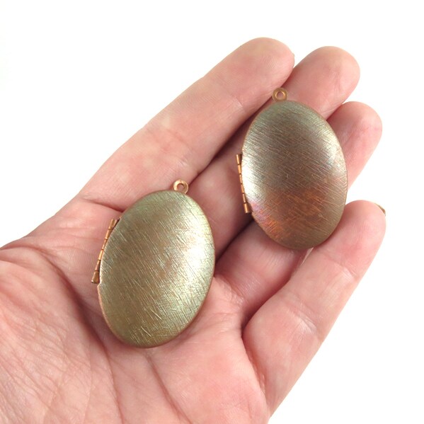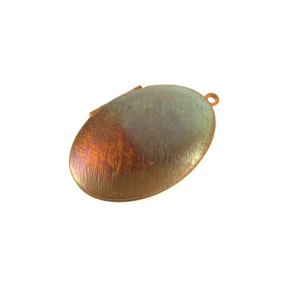 Vintage Copper Cross Hatched Texture Oval Locket (1x) (V511)